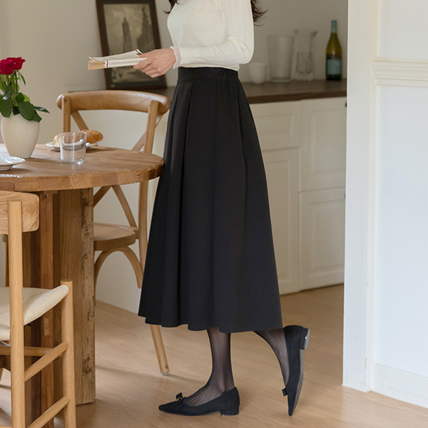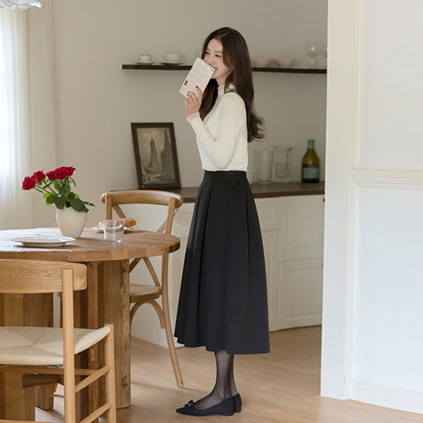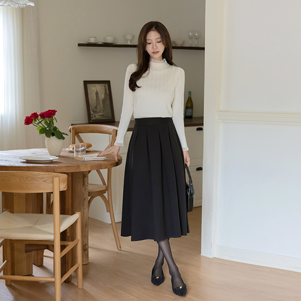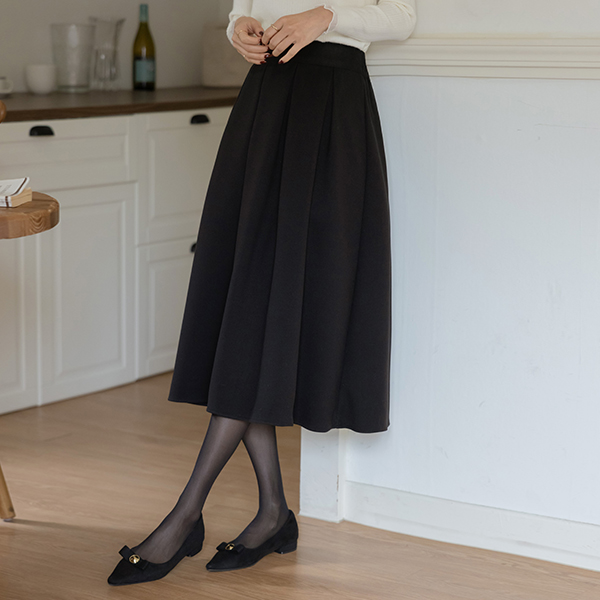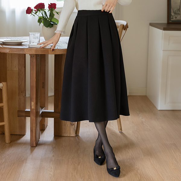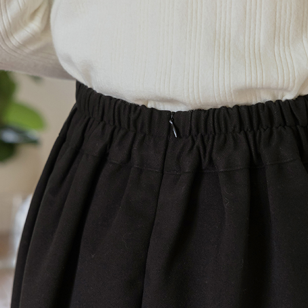 ぽかぽかした 裏起毛 プリーツ 後面バンド ウール スカート