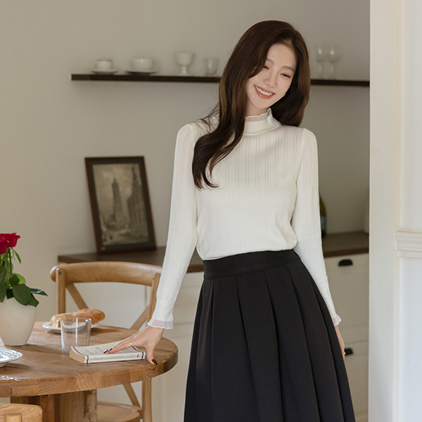 ロマンチック シフォン レイヤード タートルネック ビスコース コール天 ニット