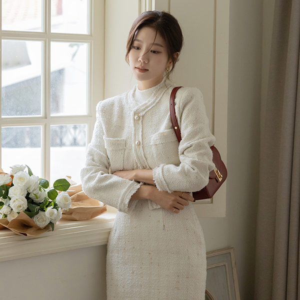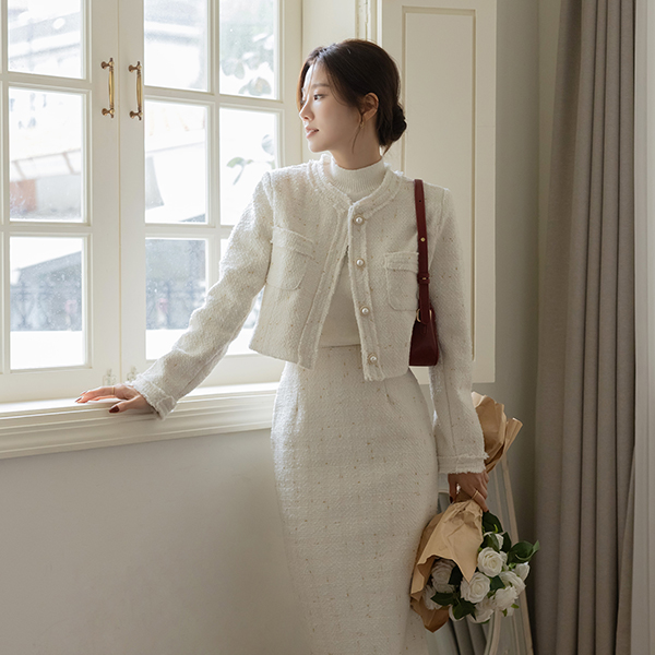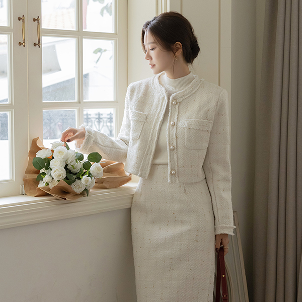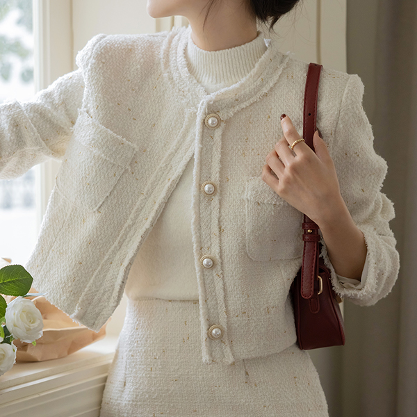 안젤라 パール ツイード タッセル Set-up ジャケット