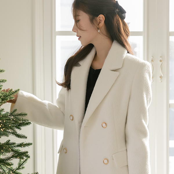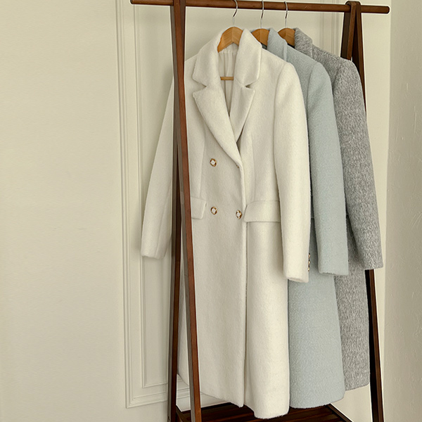ぽかぽかした パステル カラー ダブル ボタン ウール コート