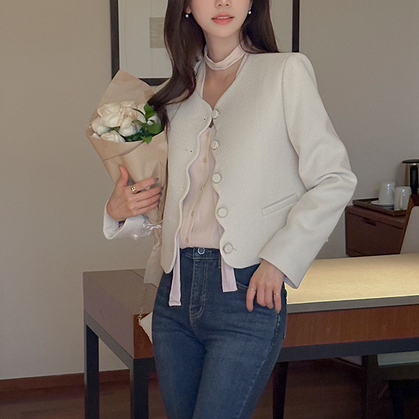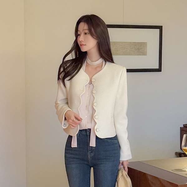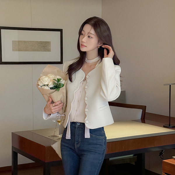 ラグジュアリー ウエーブ ポイント ツイード ジャケット