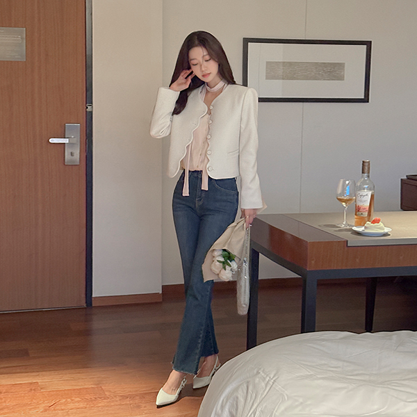 ラグジュアリー ウエーブ ポイント ツイード ジャケット