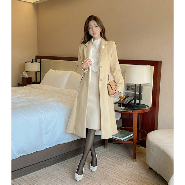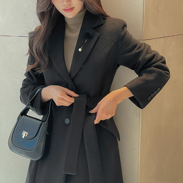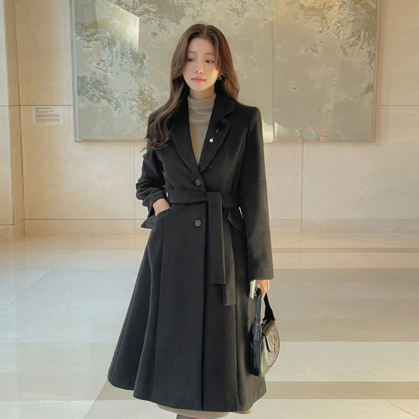 ブローチ ベルト (セット) Aライン ウール キルティング コート