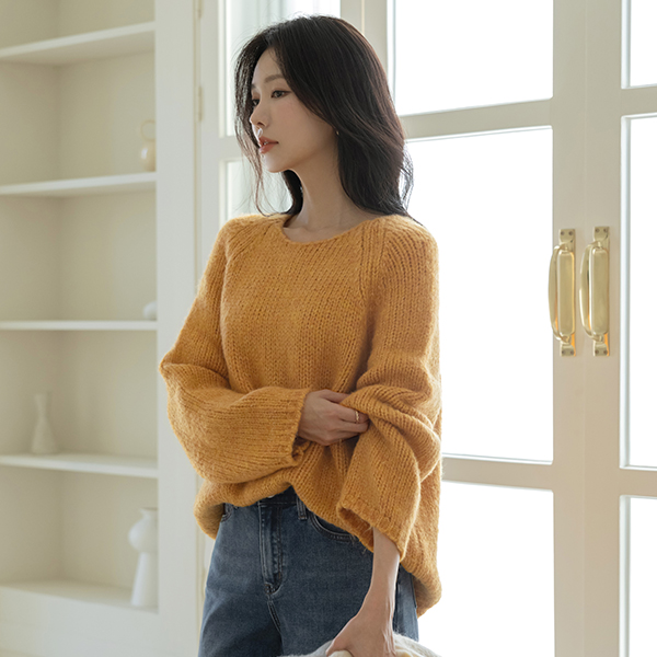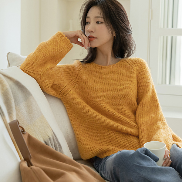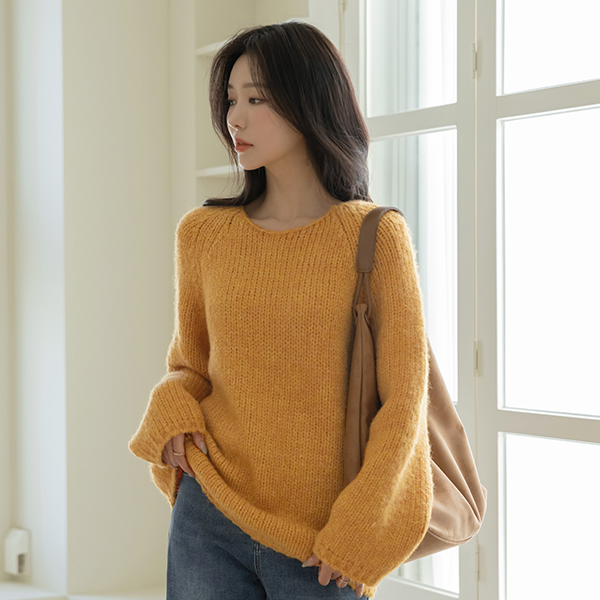 Ellin ほっそりした ルーズフィット 分厚い ラグラン ニット