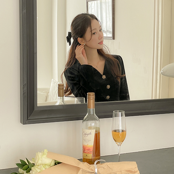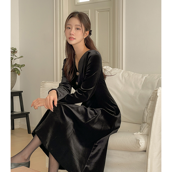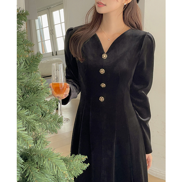 칼리스 ハートネック ベルベット 弾力 Aライン ワンピース