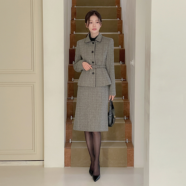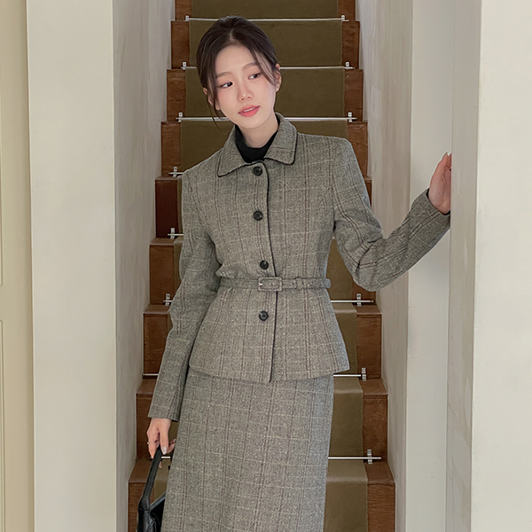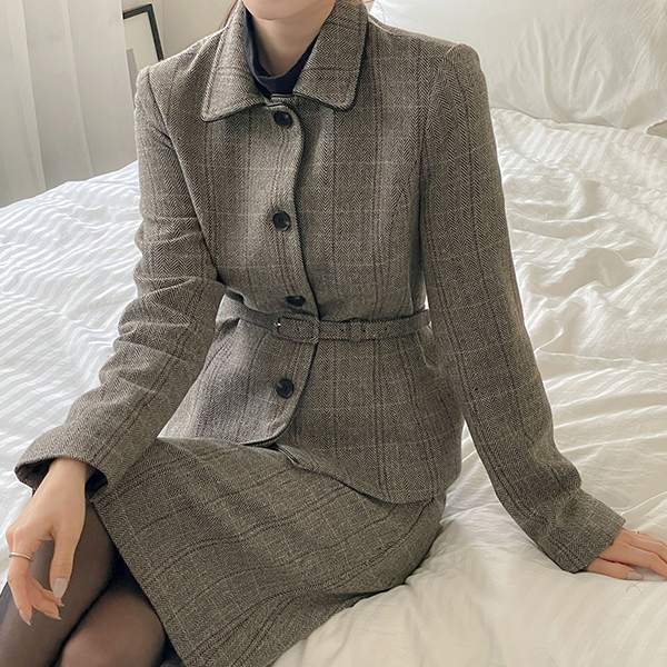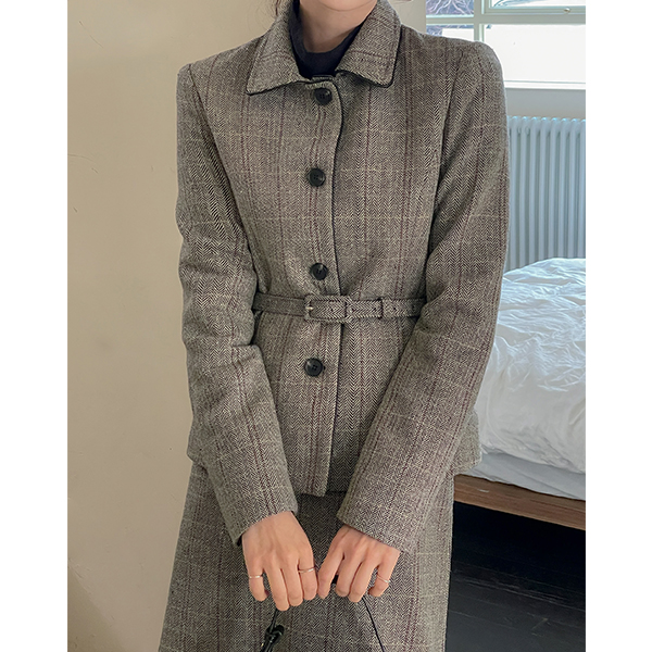 리안 ヘリンボーン ウール ベルト Set-up ジャケット