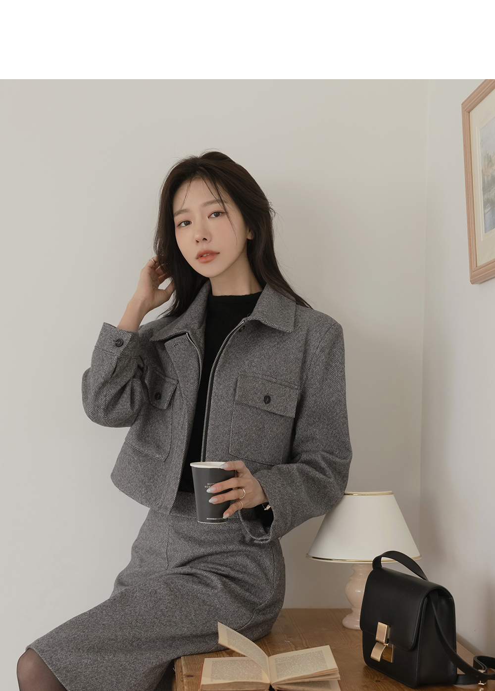 원스 ヘリンボーン ウール クロップド Set-up ジャケット