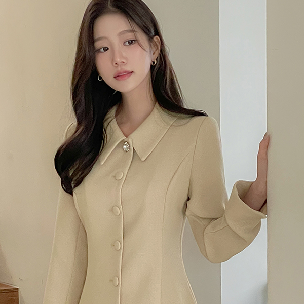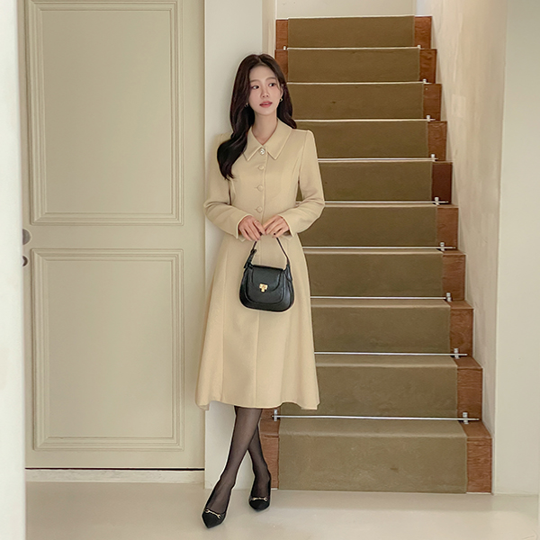 ツイード 袖 スリット Aライン ワンピース