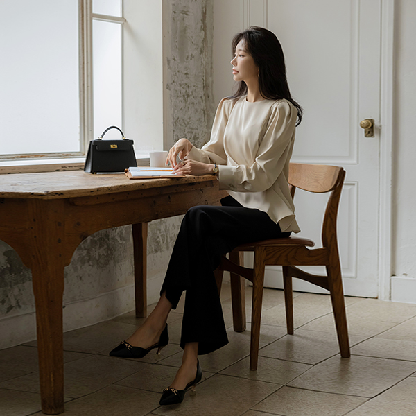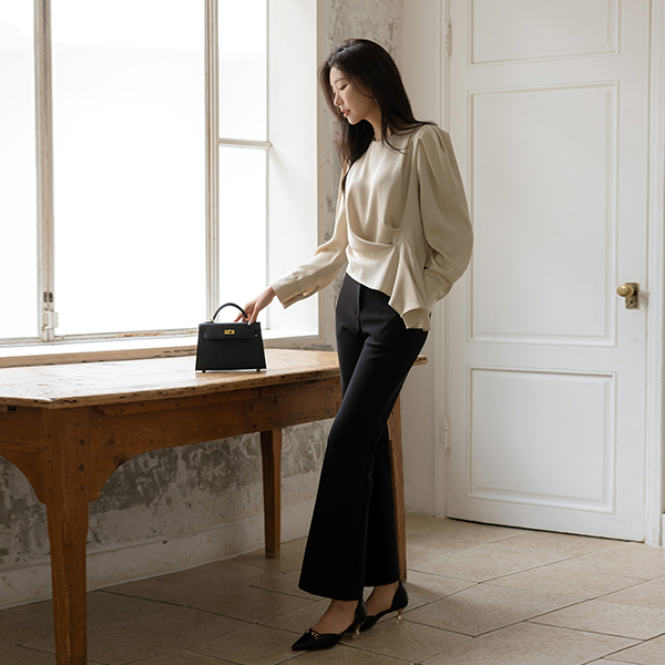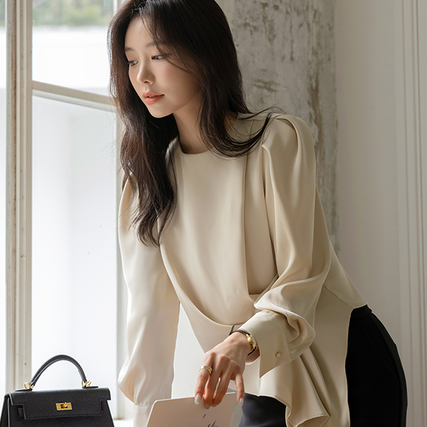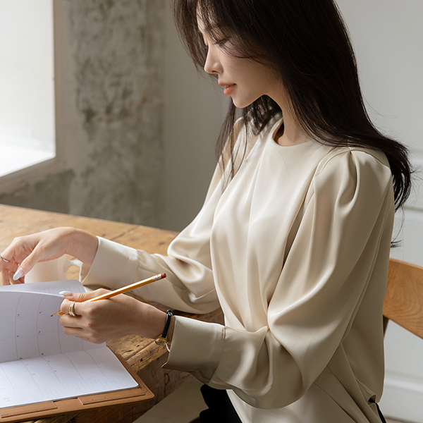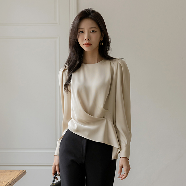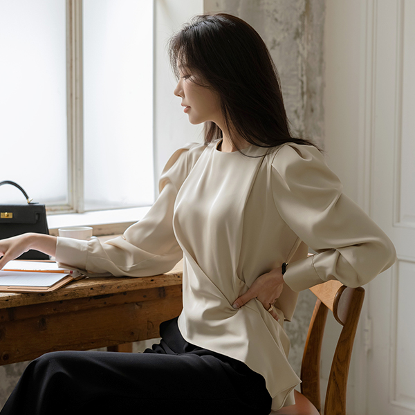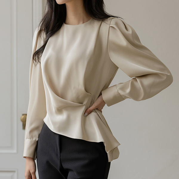 シルキー 斜線 しわ パフ ブラウス