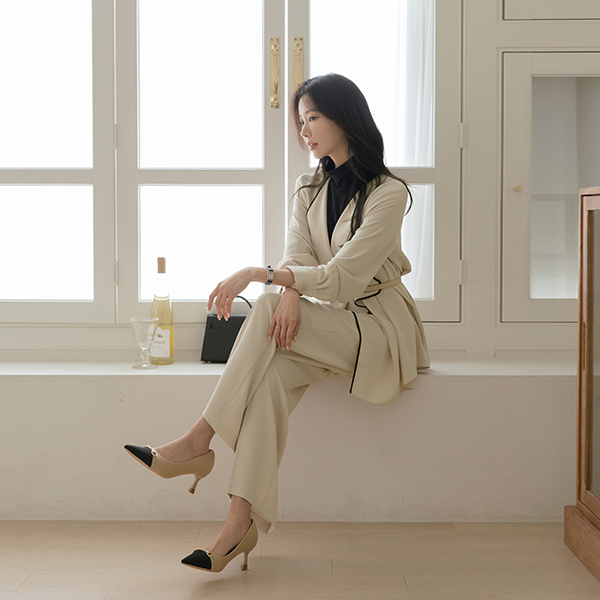 エレガンス 配色 ラッフル ソフト Set-up ジャケット(+ベルト)