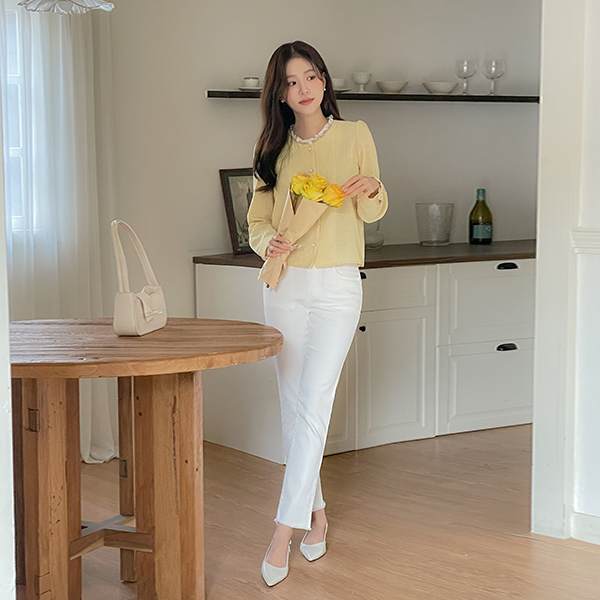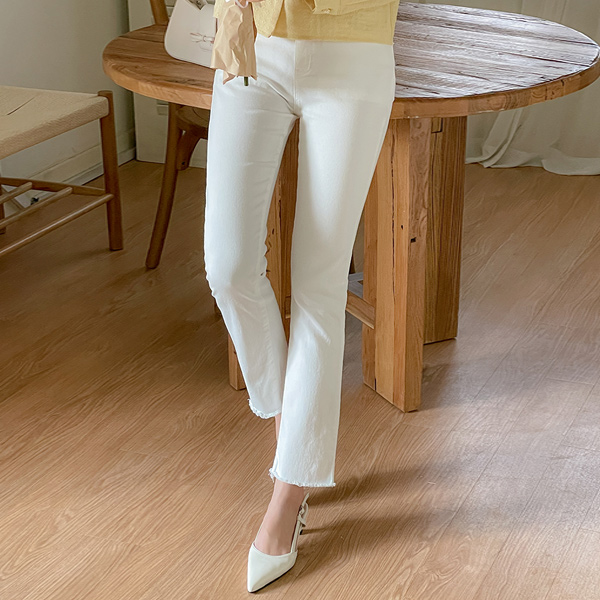 ナチュラル カッティング バンディング ストレート コットン パンツ