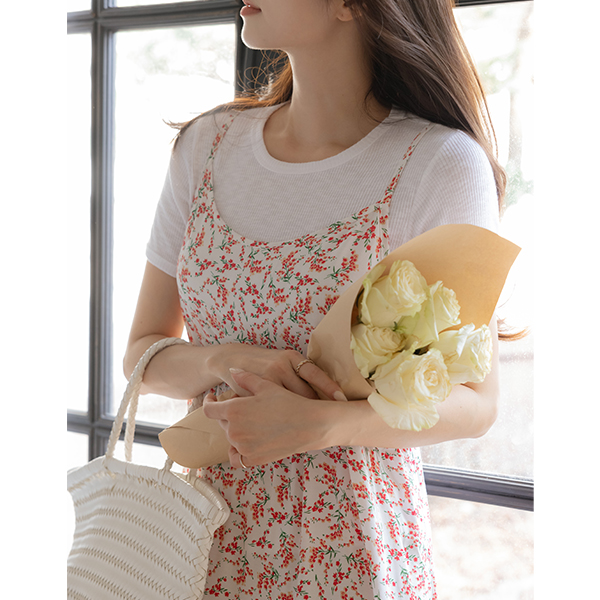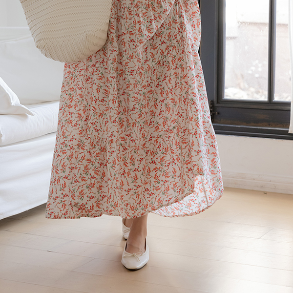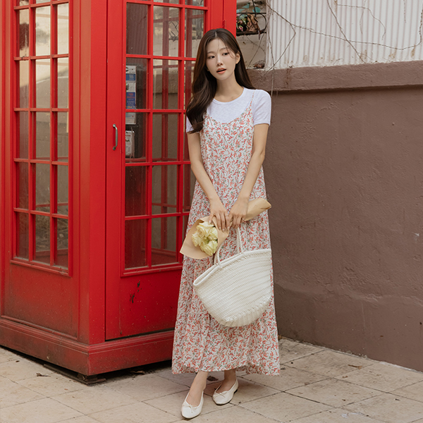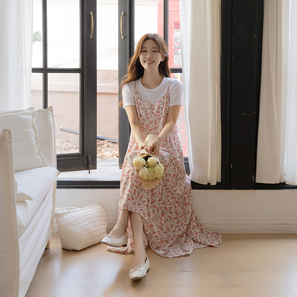 ODE 花柄 カンカン 袖なし ロング ワンピース