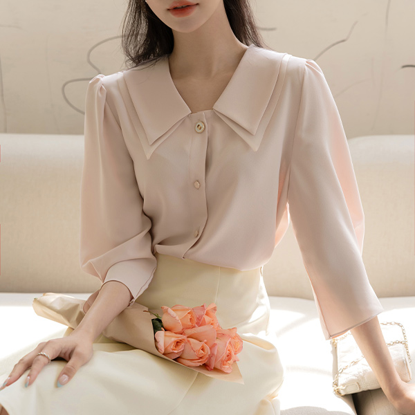 ピュア ロマンチック 二重 カラー パフ ブラウス