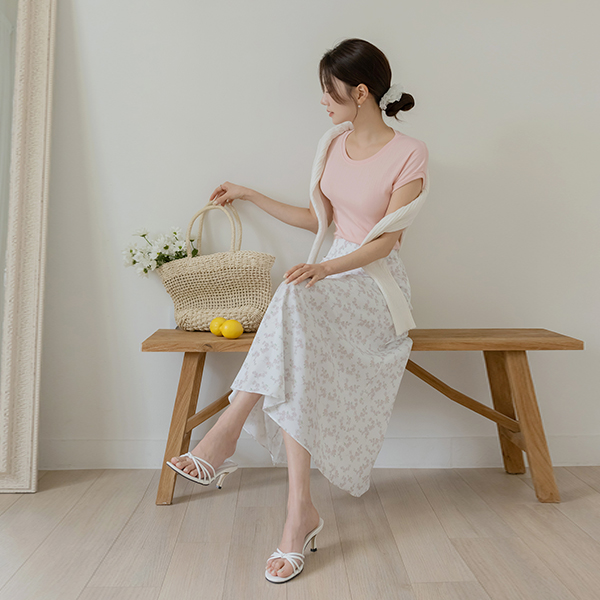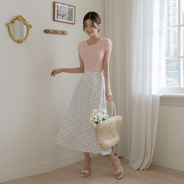 フローラル フェミニン バンディング スカート