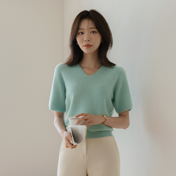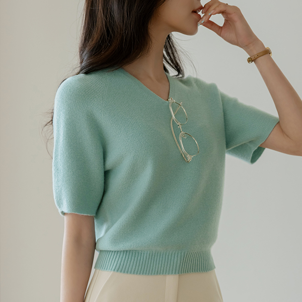 메리노울 Whole Garment Vネック 半そで ニット