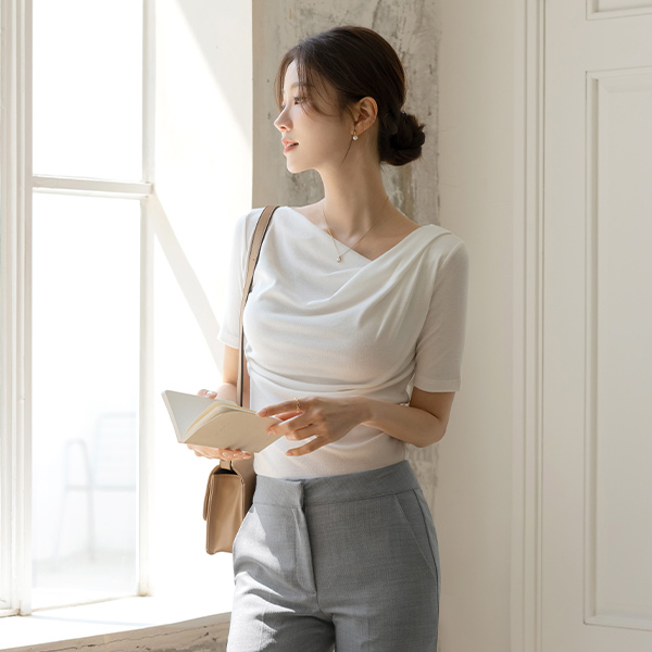 ナチュラル 縒り カウルネック 弾力 ティーシャツ