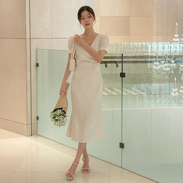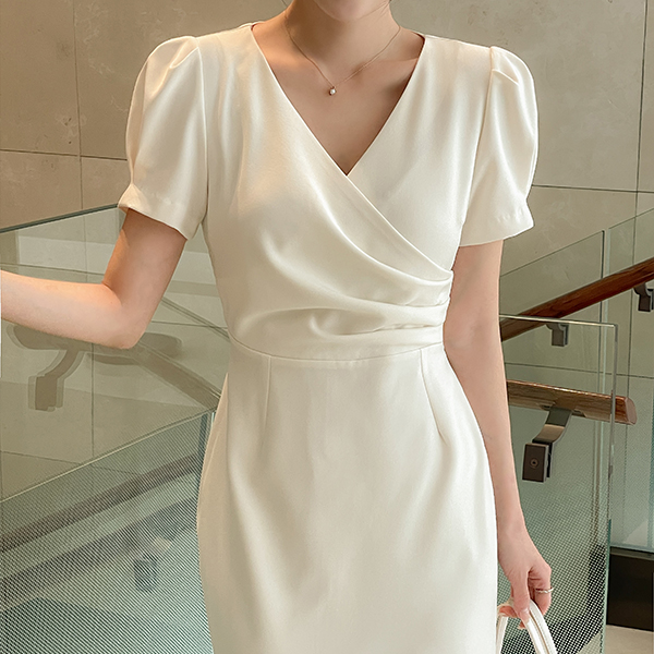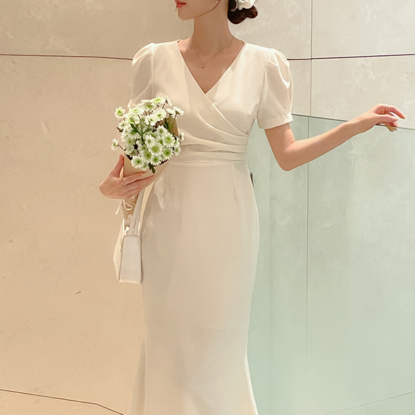 Eli ラップ パフ 袖 紐 ワンピース