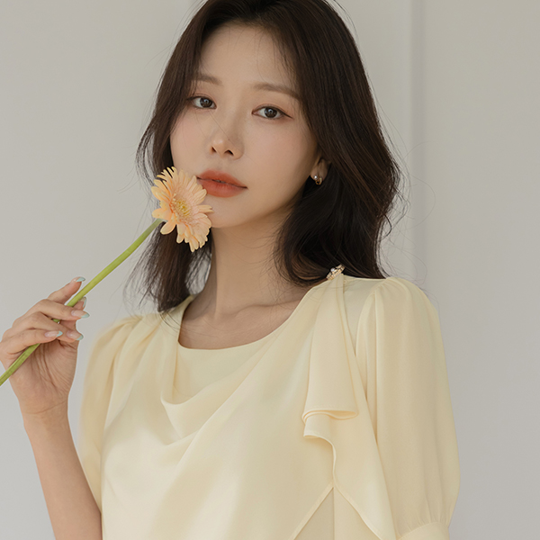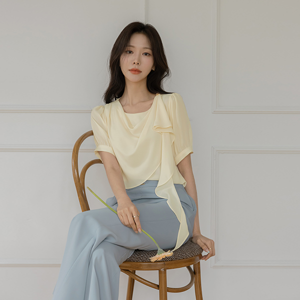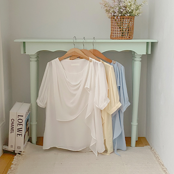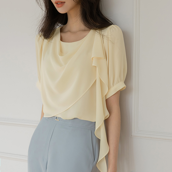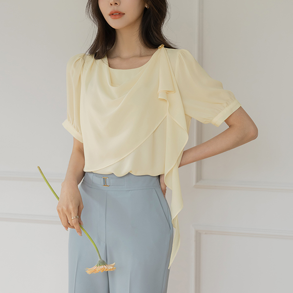 ドレープ ショルダー 飾り 半そで ブラウス