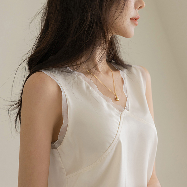 シースルー 配色 袖なし ブラウス