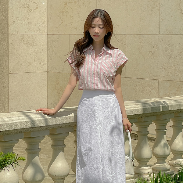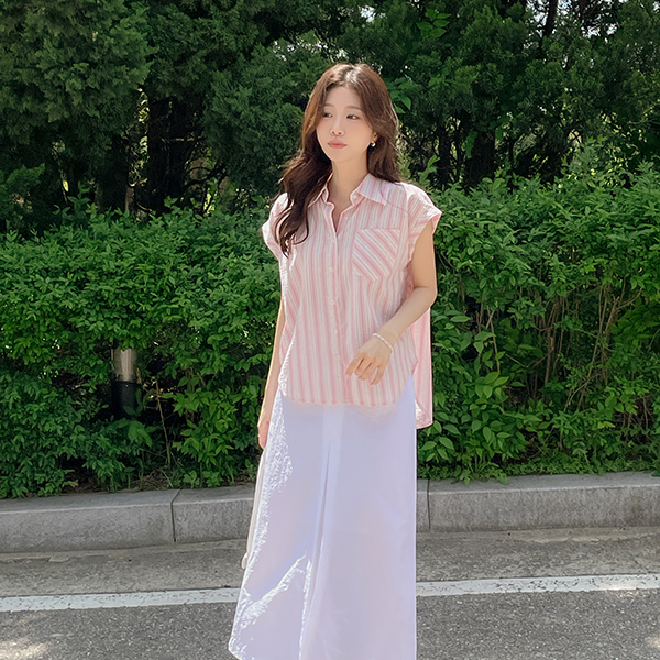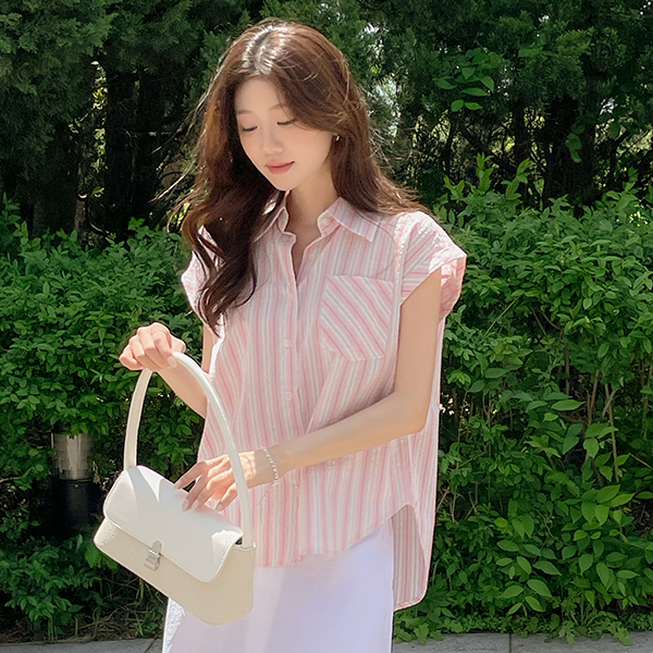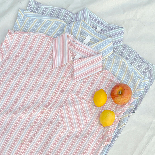 ODE カラー ストライプ キャップップ シャツ
