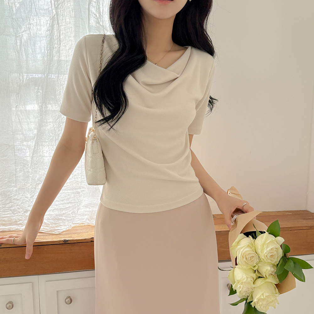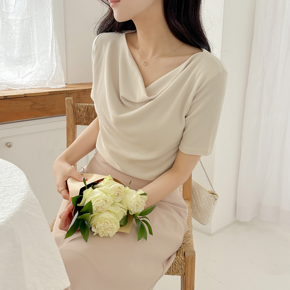 カウルネック 弾力 ティーシャツ