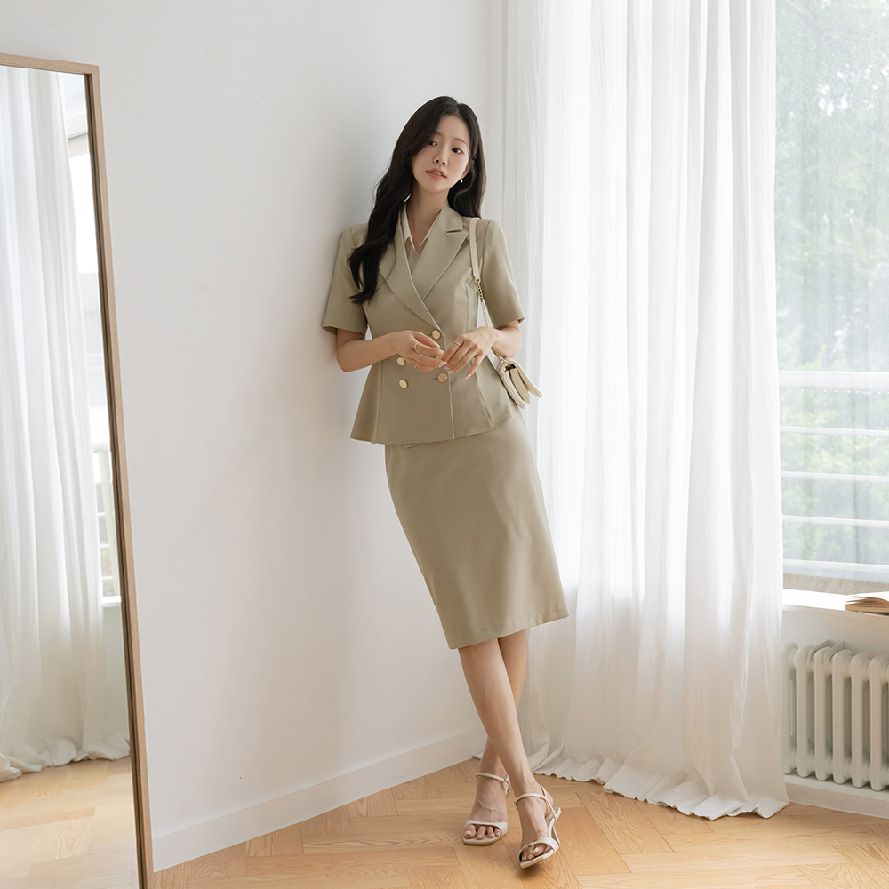 ルネ ダブル ボタン ペプラム Set-up ジャケット
