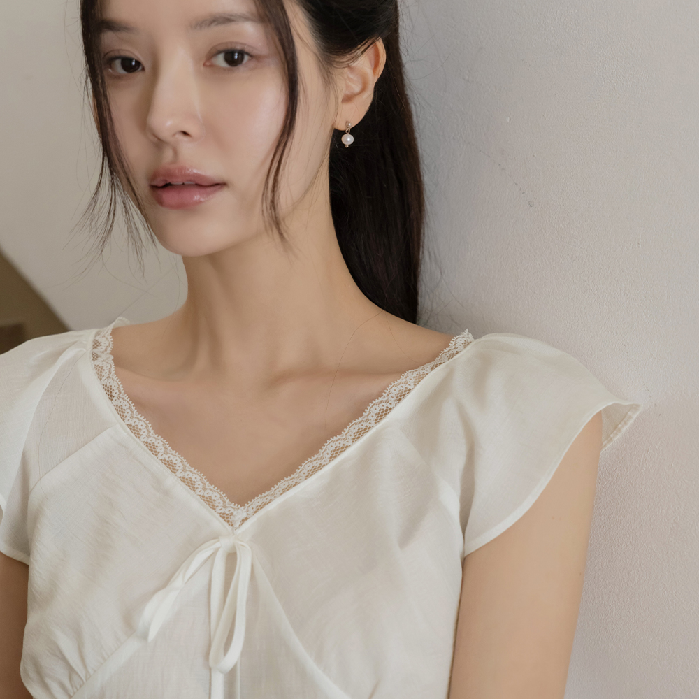 ロマンチック レイス リボン キャップップ ブラウス