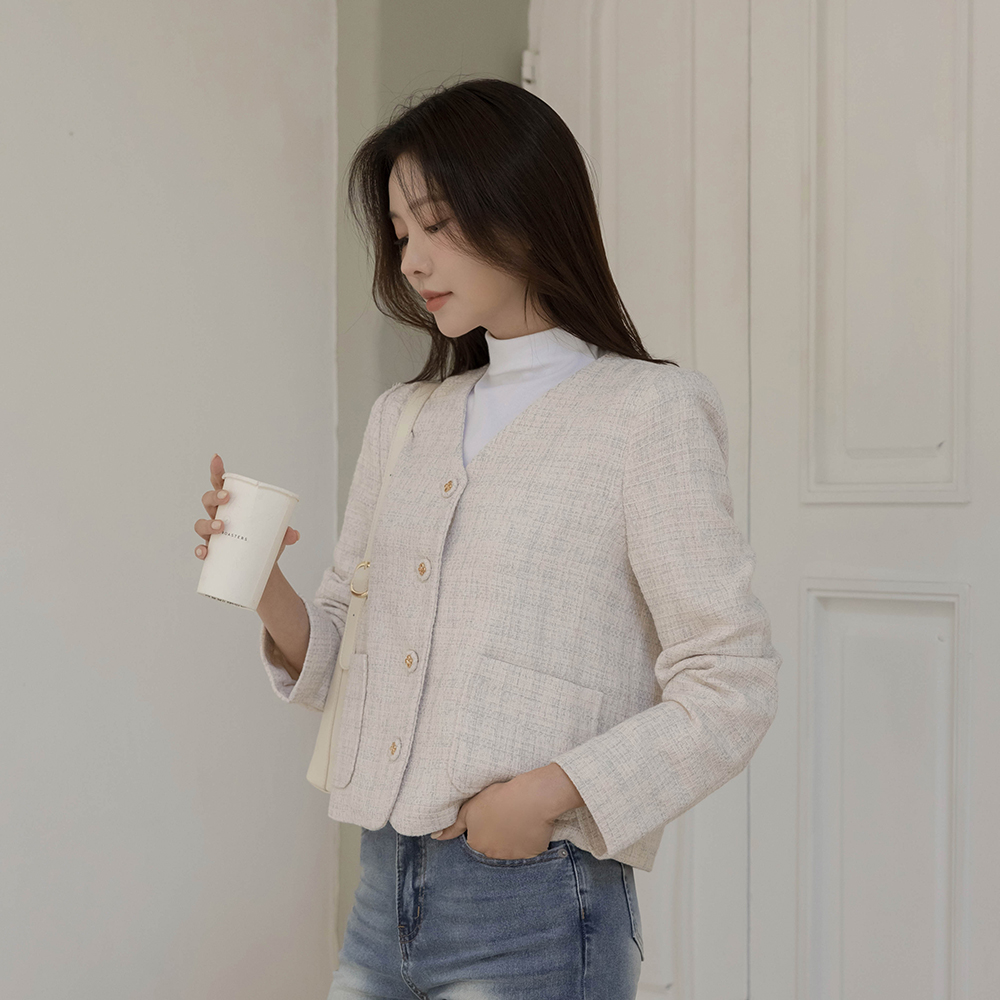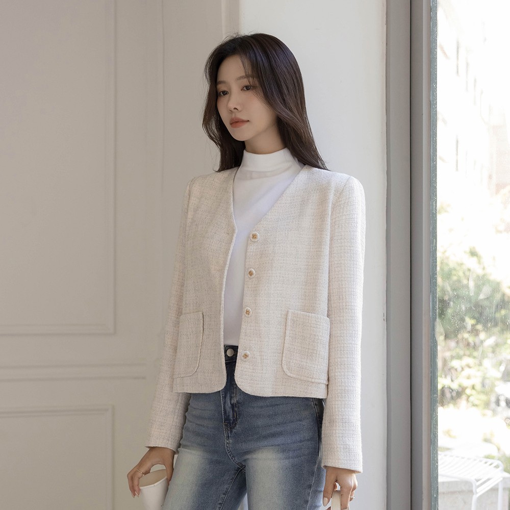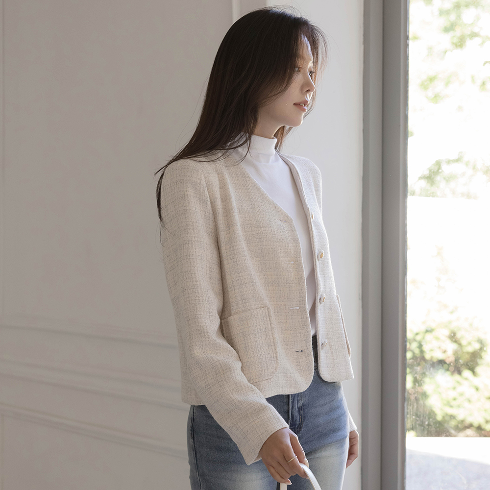 ノーカラー ツイード ジャケット