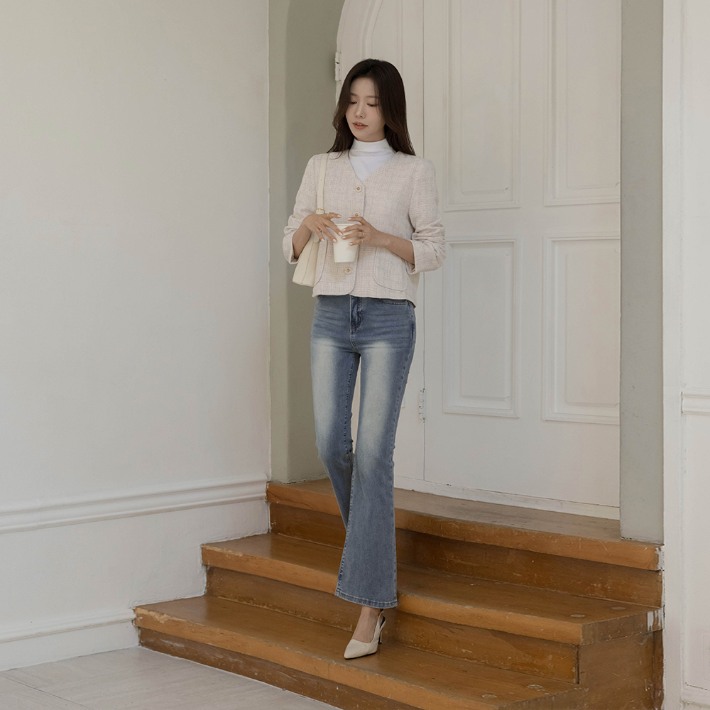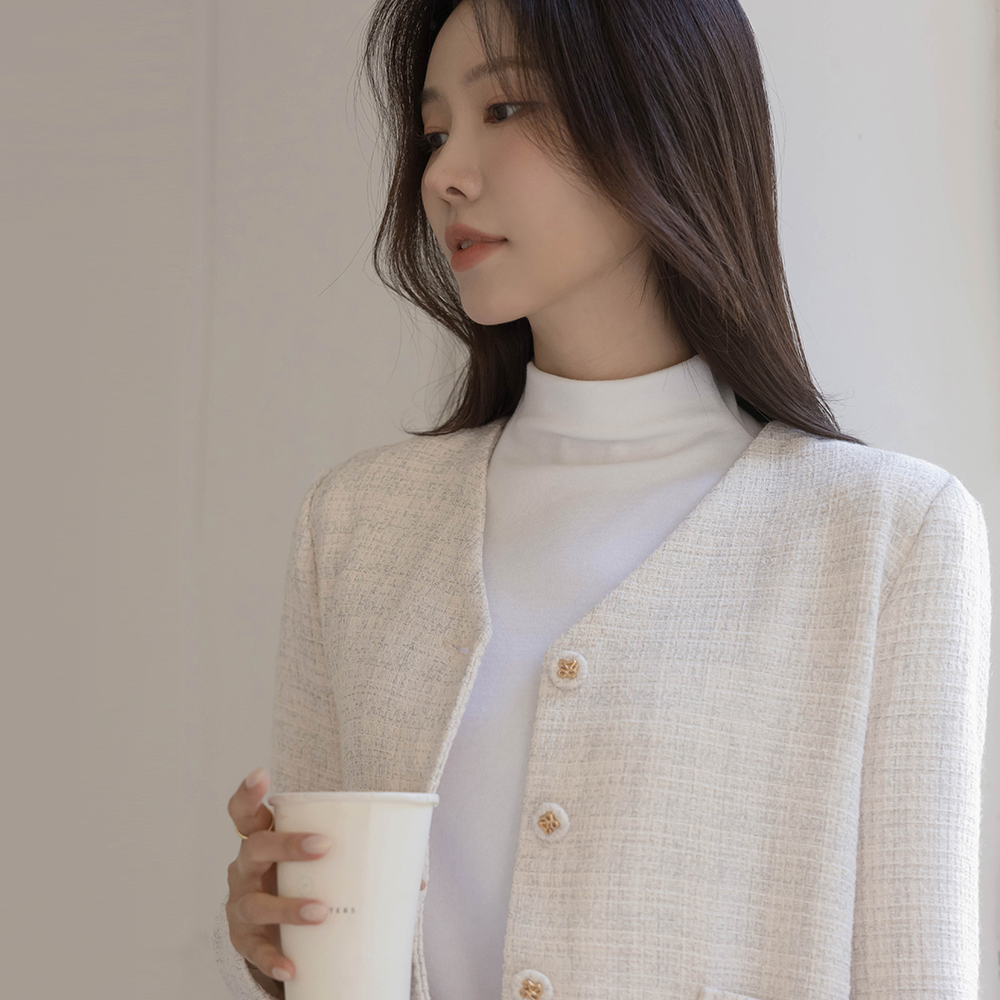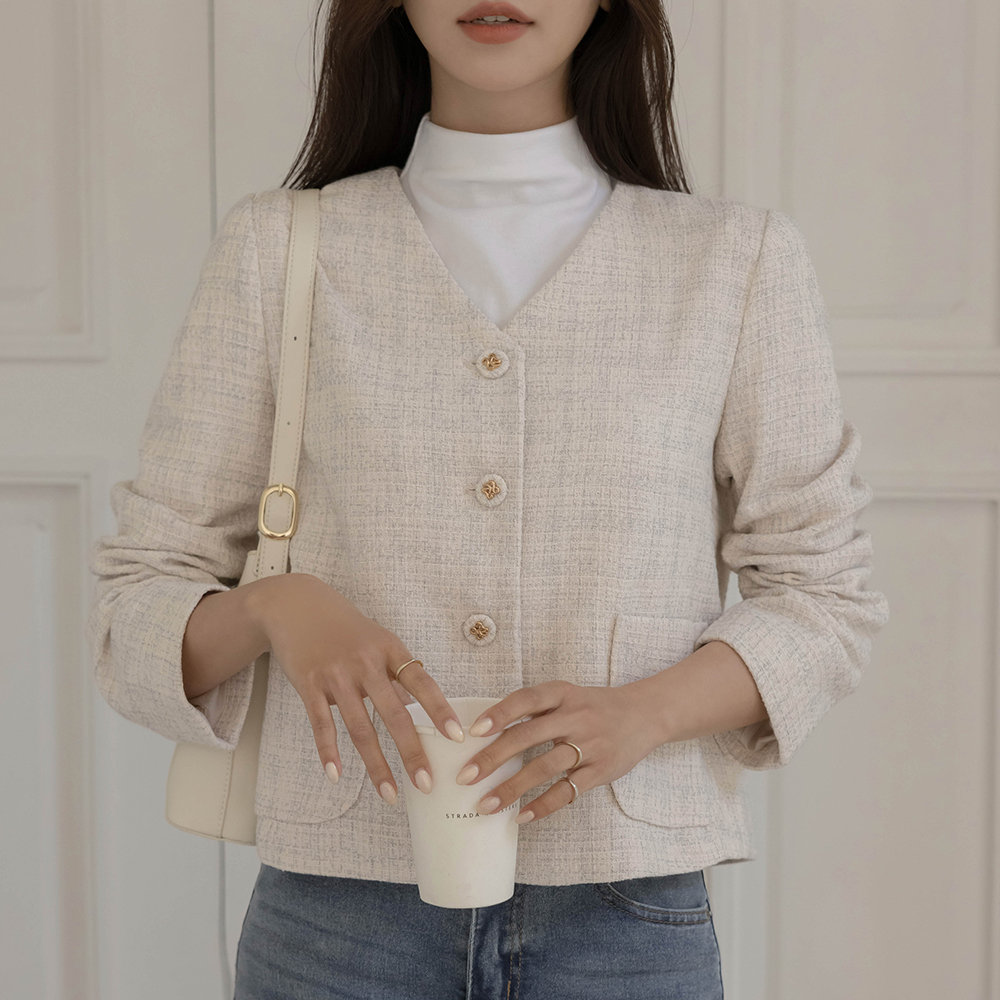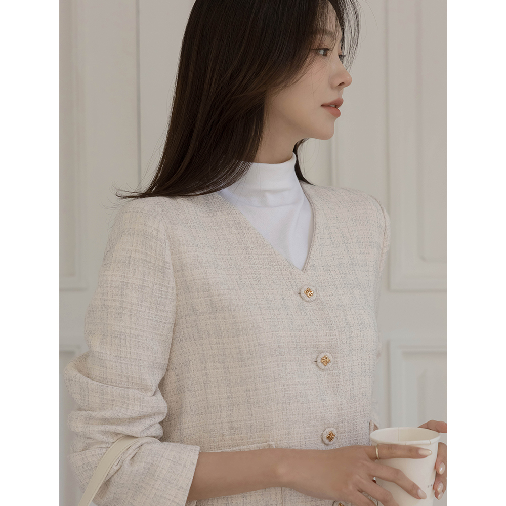 ノーカラー ツイード ジャケット