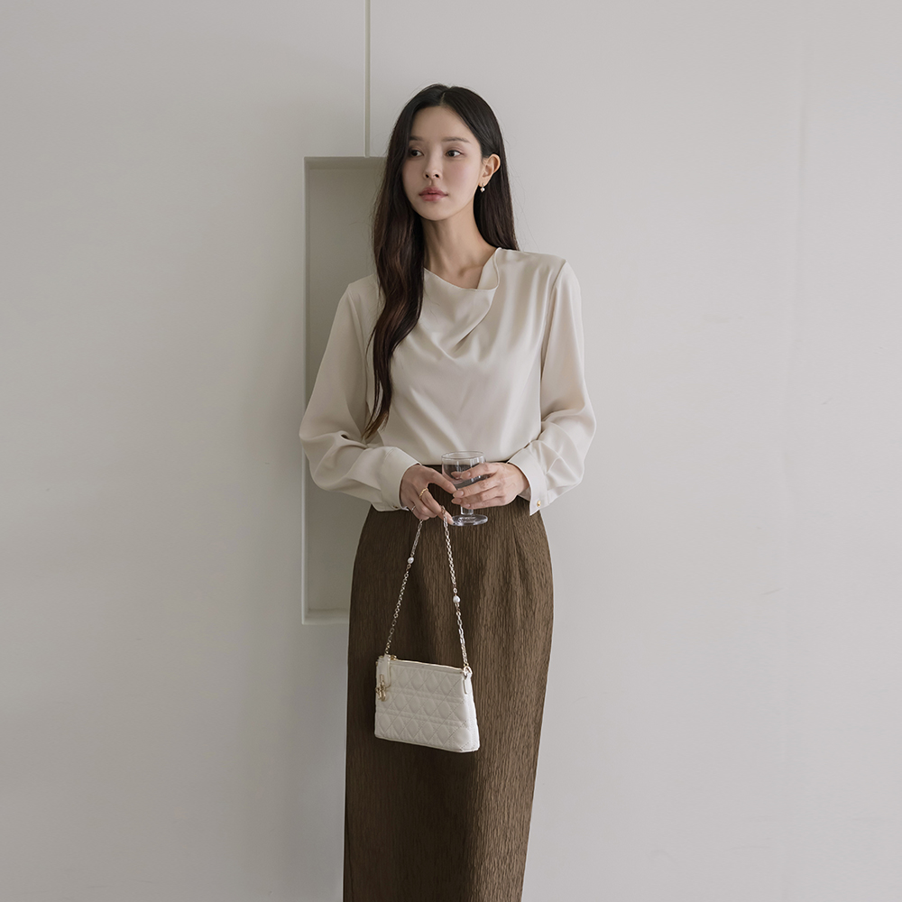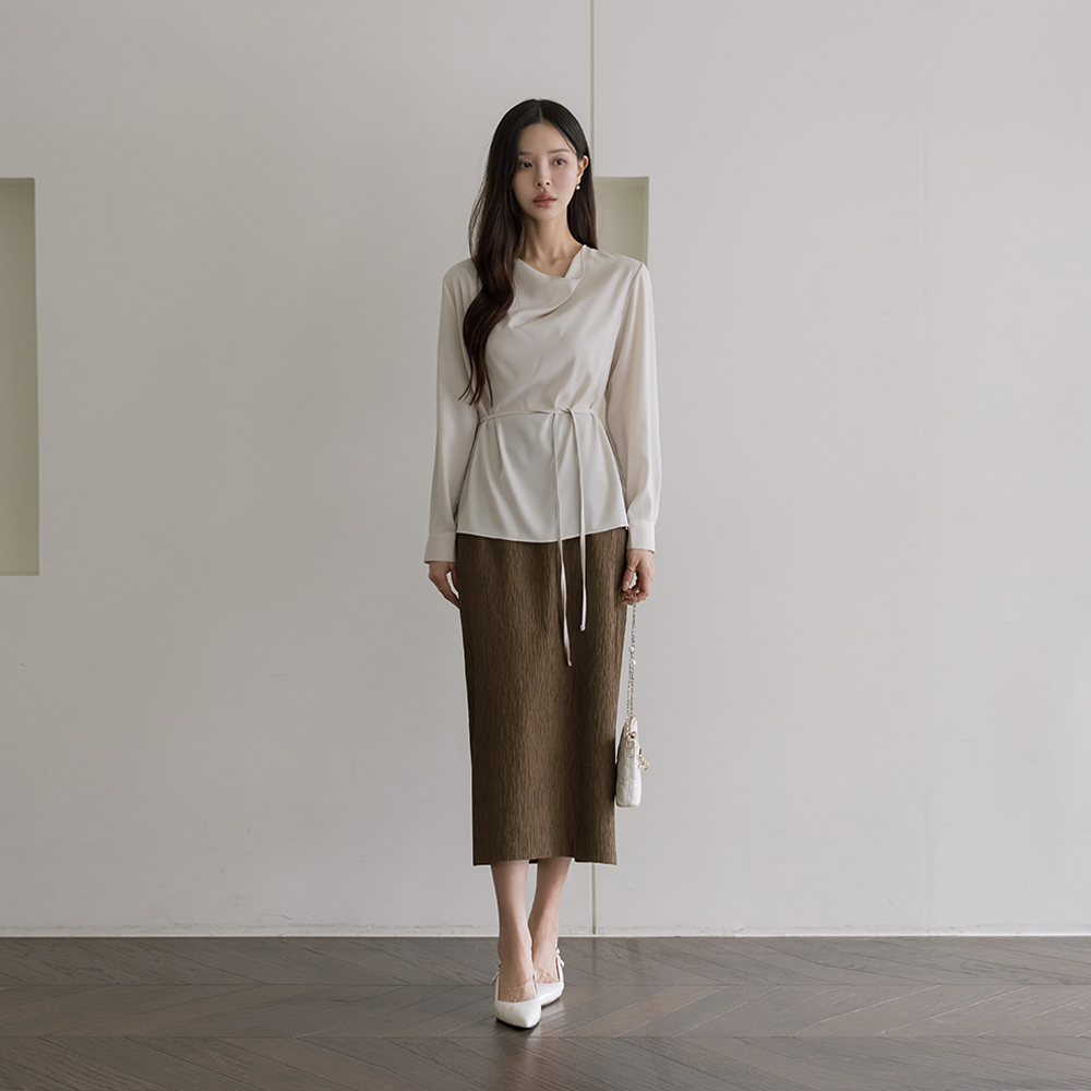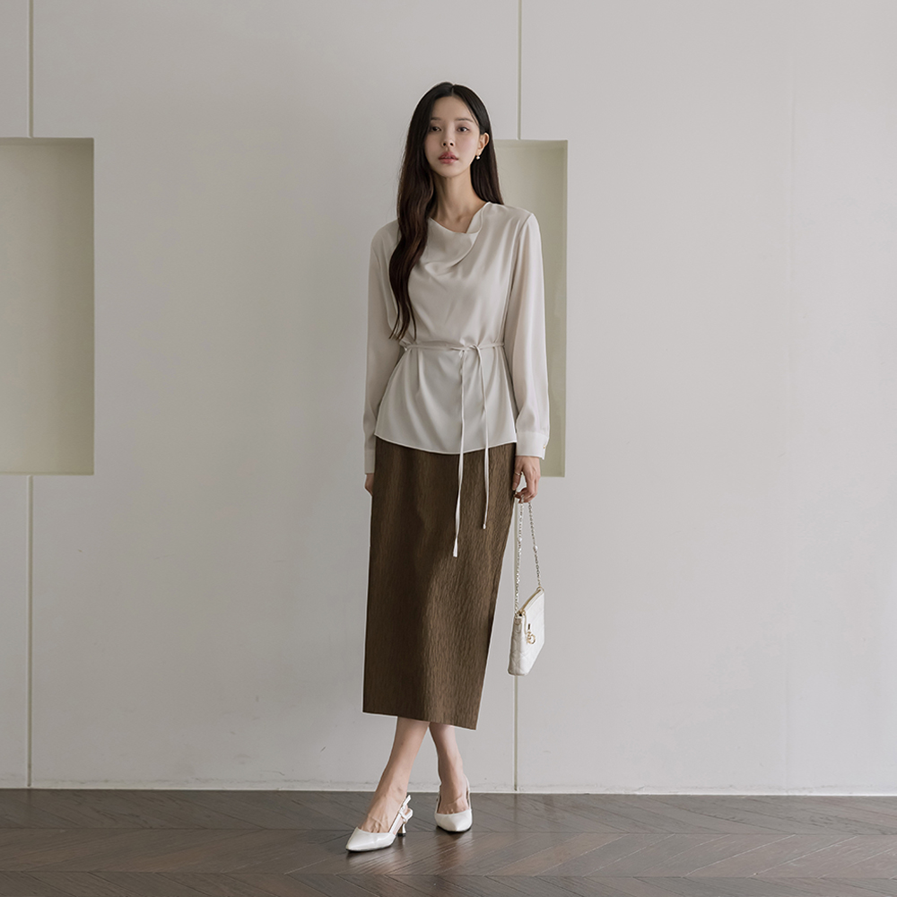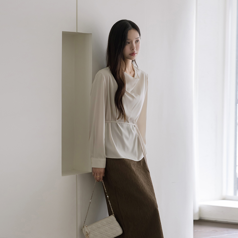 Mari カウルネック 長袖 ブラウス(+ベルト)