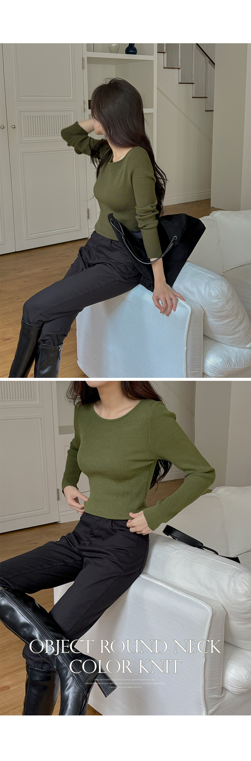 オブジェ ラウンドネック カラー 弾力 コール天 ニット