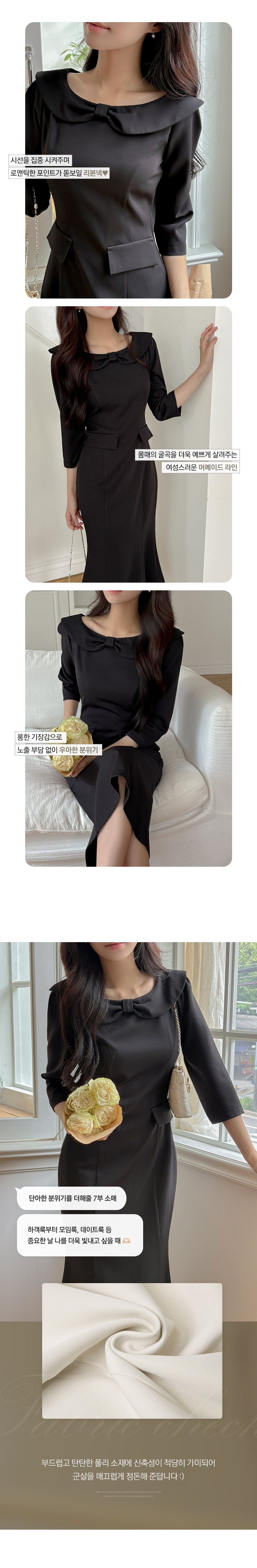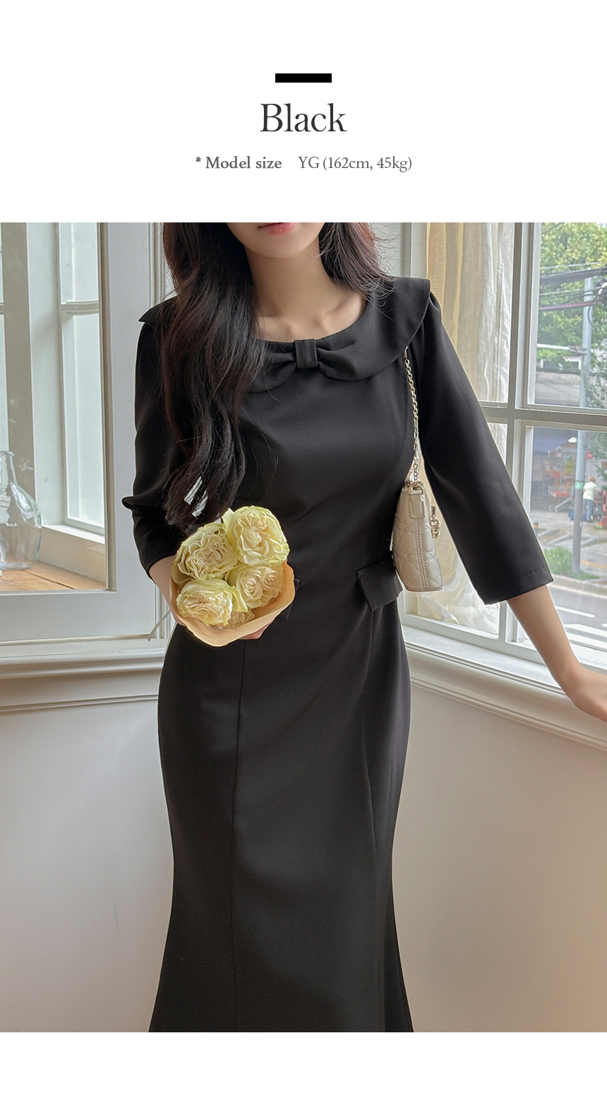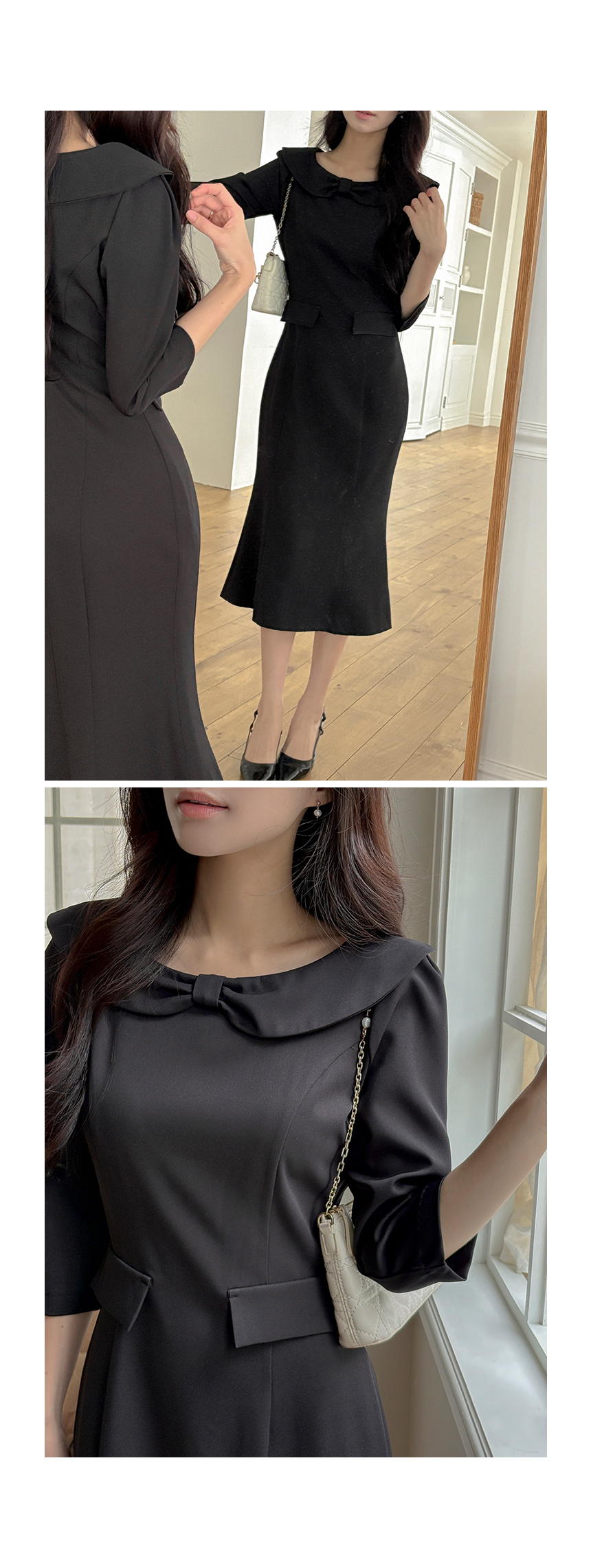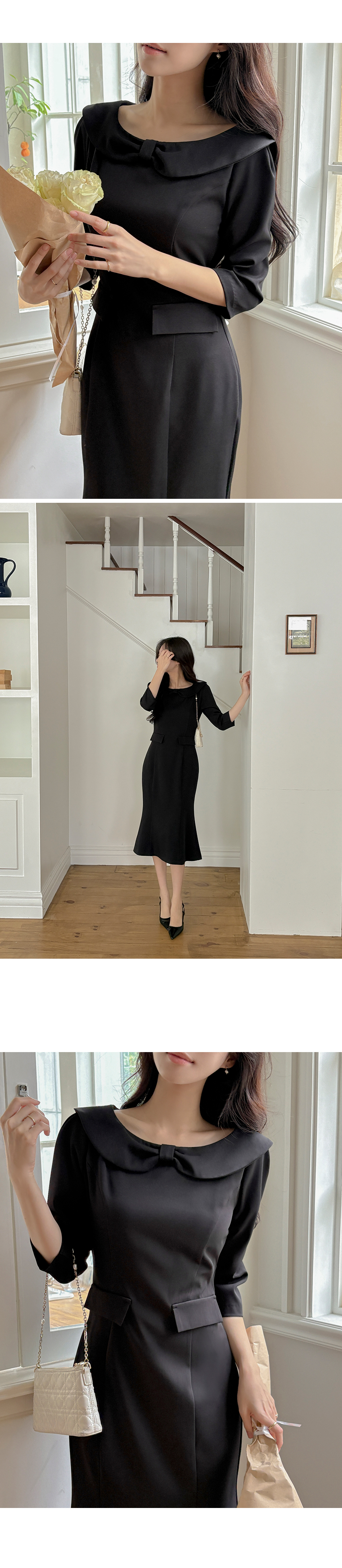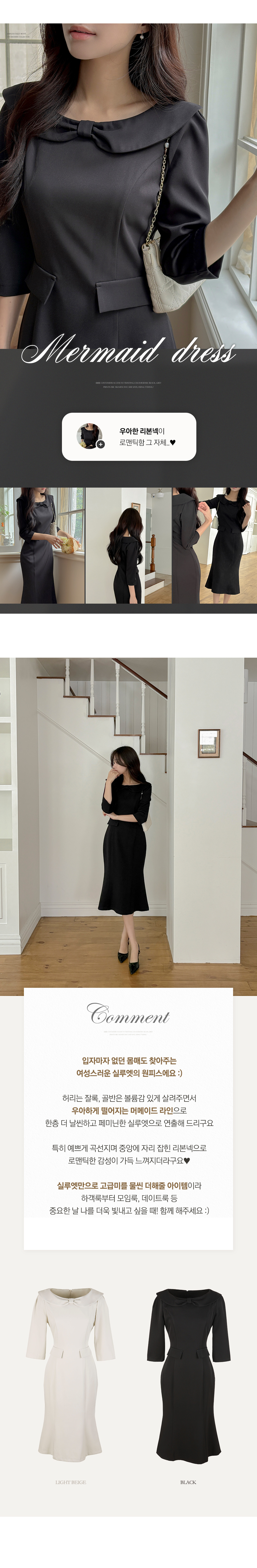 ロマンチック リボン カラーネック マーメイド ワンピース