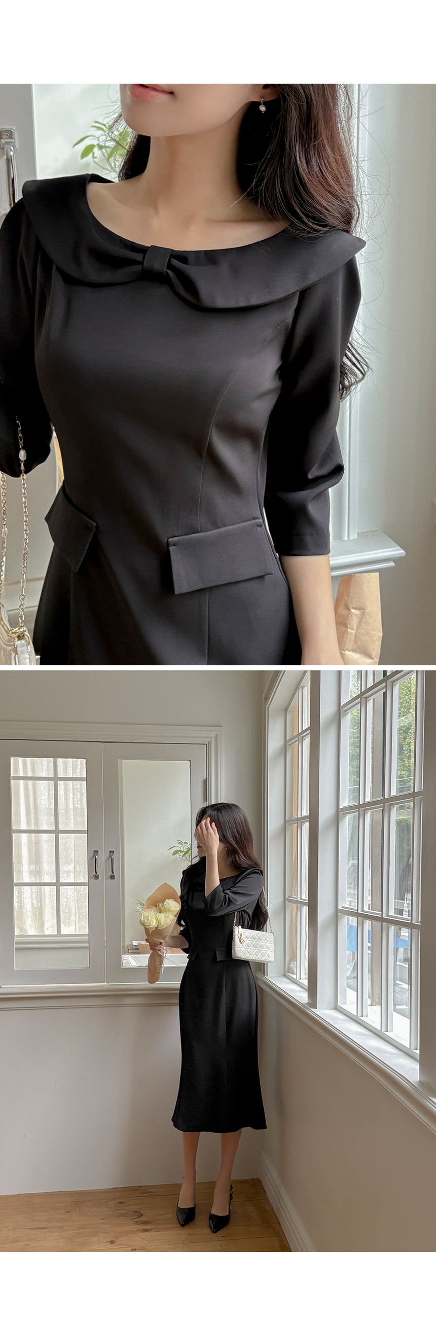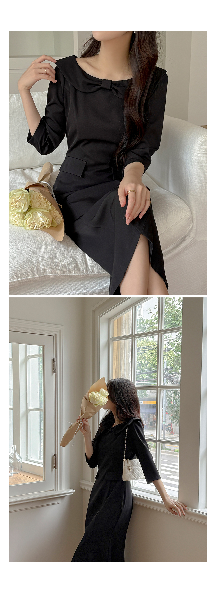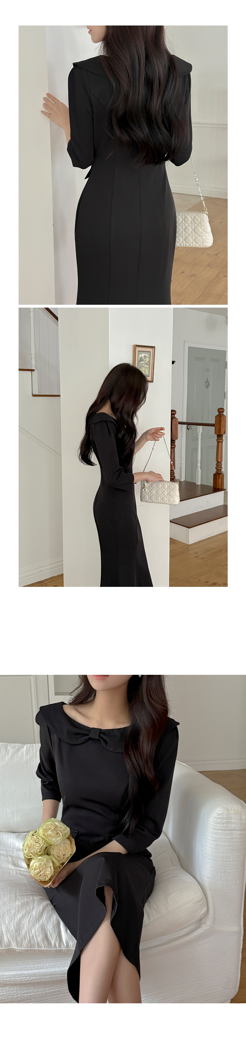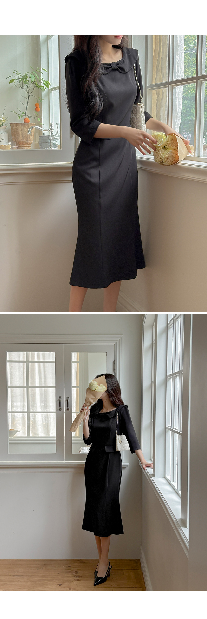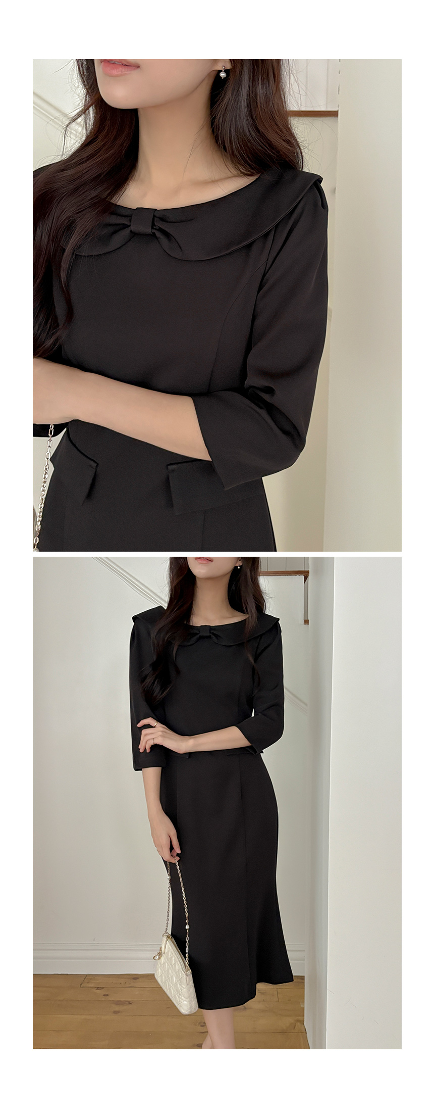 ロマンチック リボン カラーネック マーメイド ワンピース