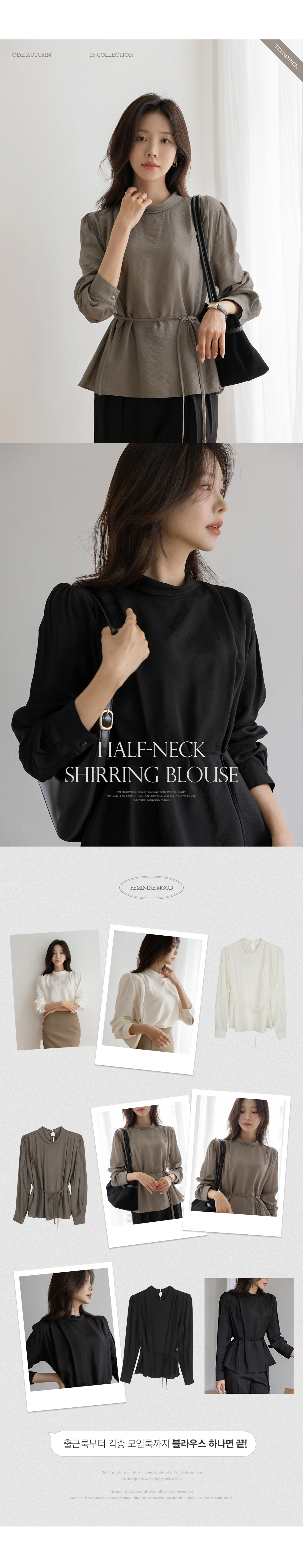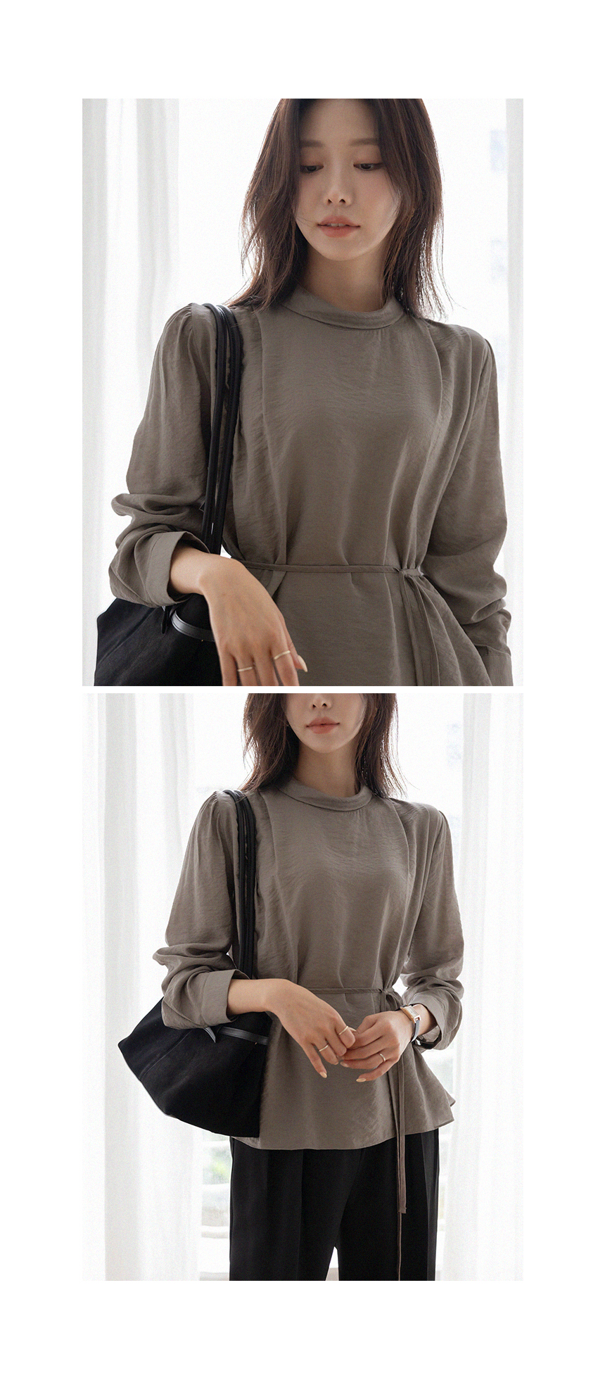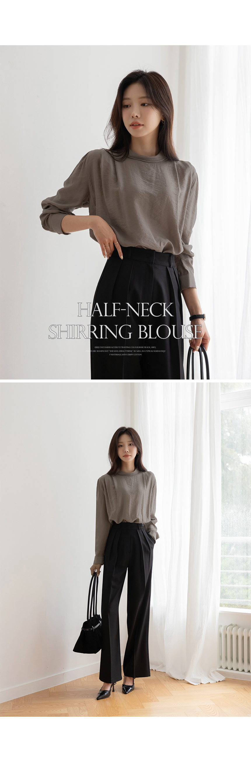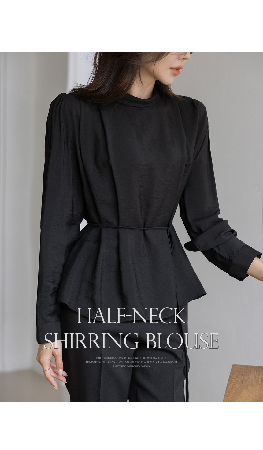 ハーフネック ショルダー シャーリング ブラウス(+ベルト)