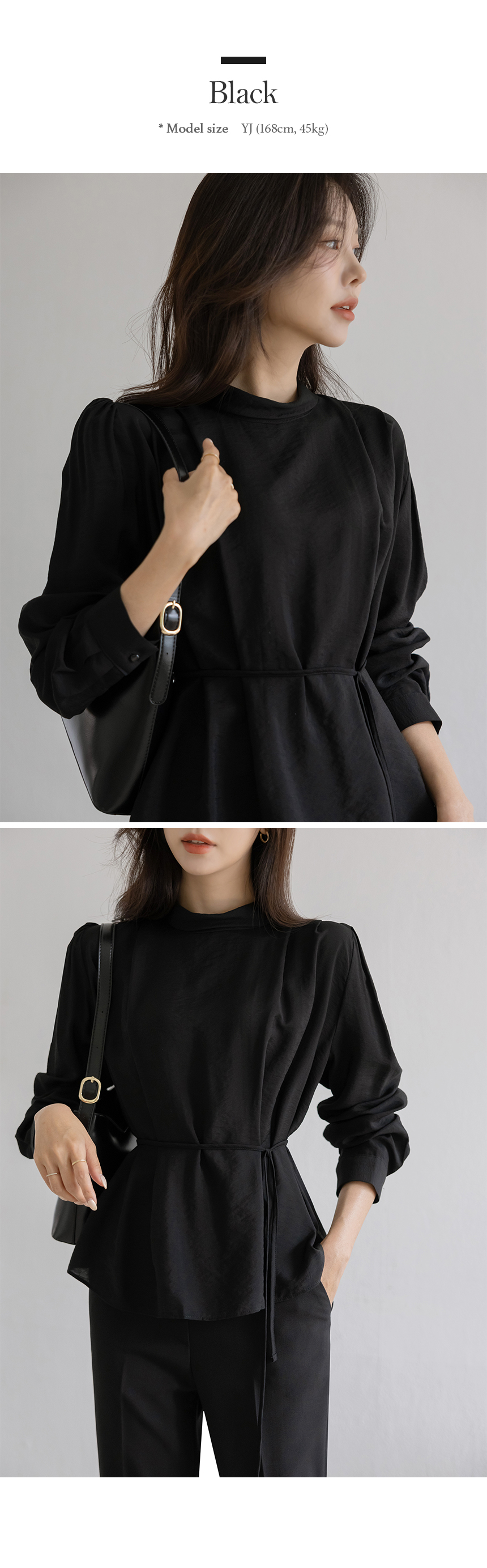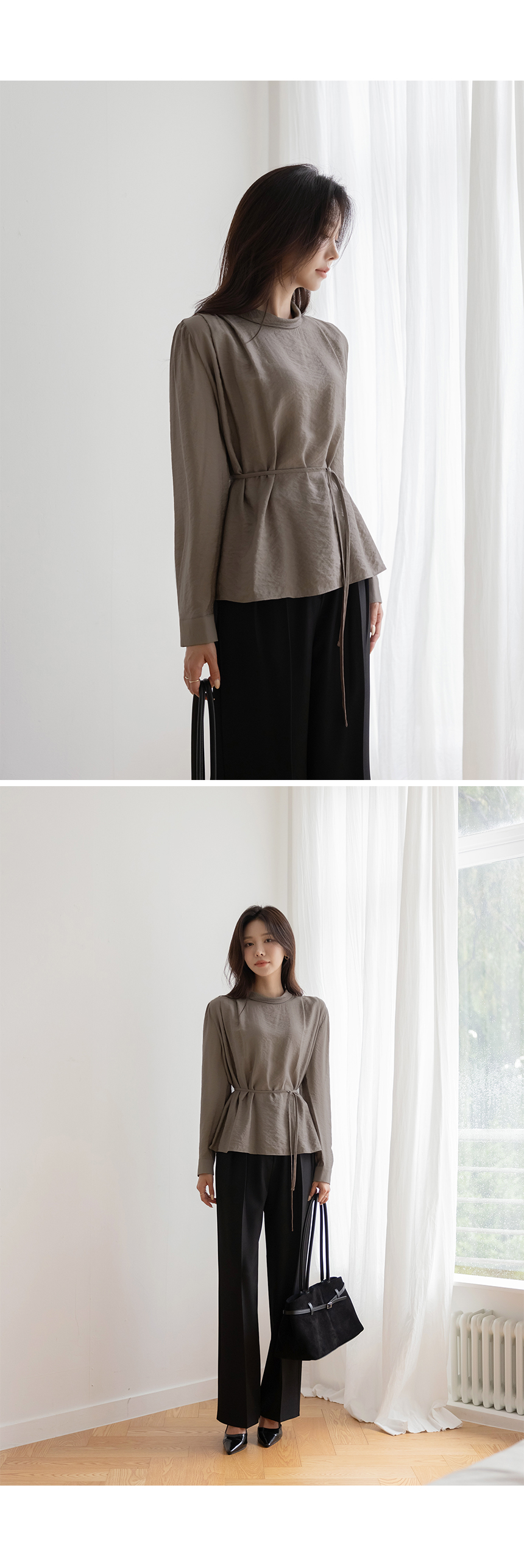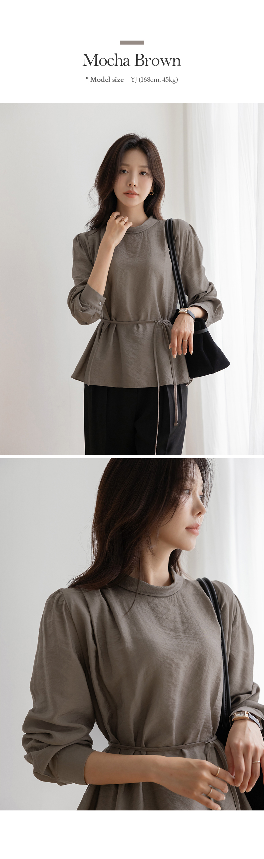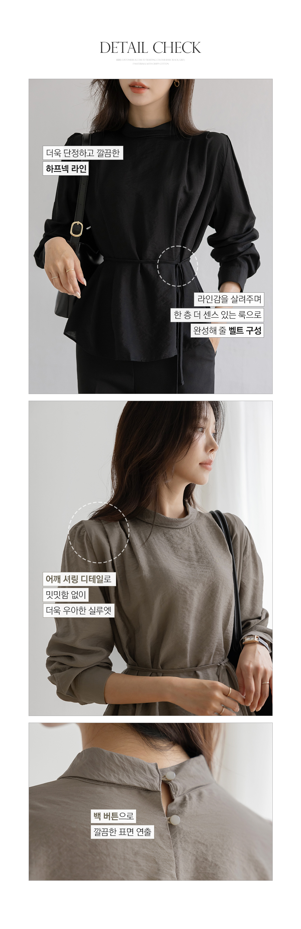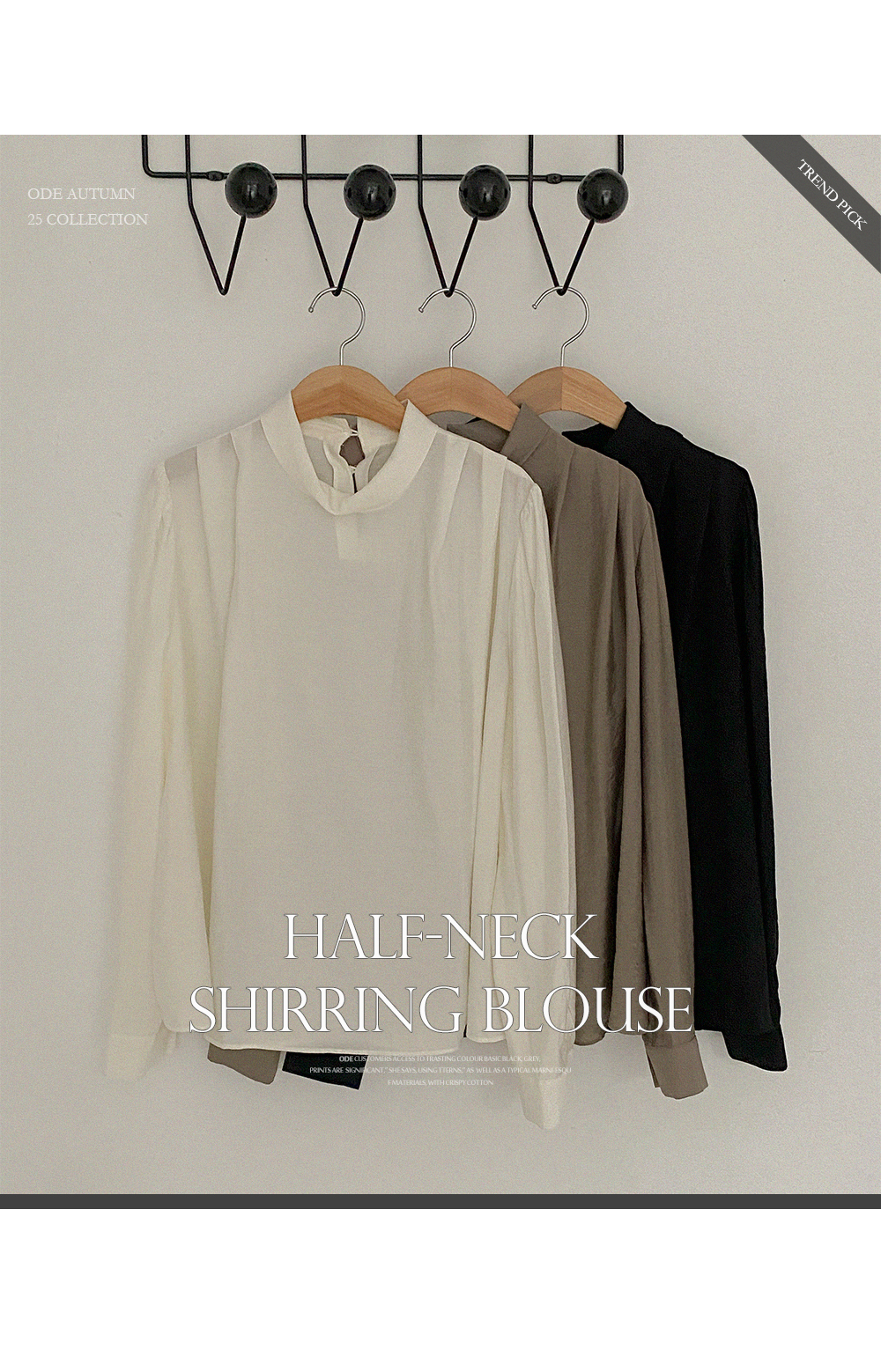 ハーフネック ショルダー シャーリング ブラウス(+ベルト)