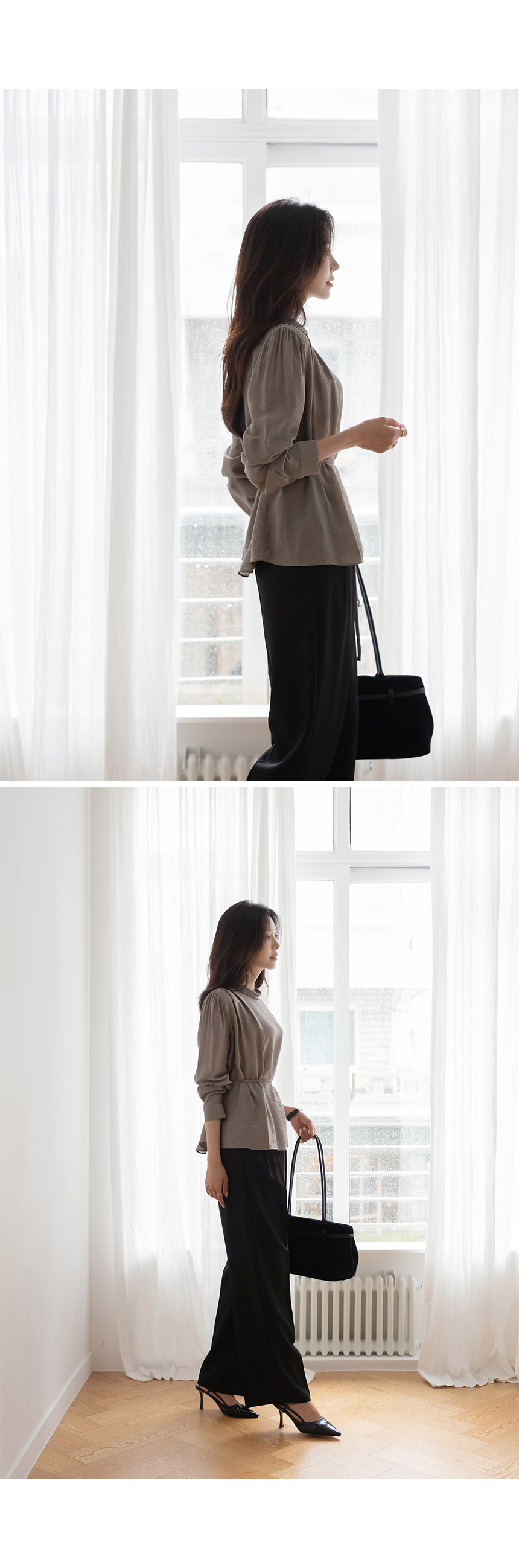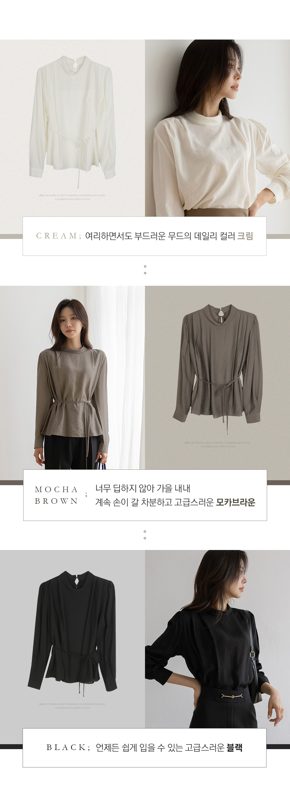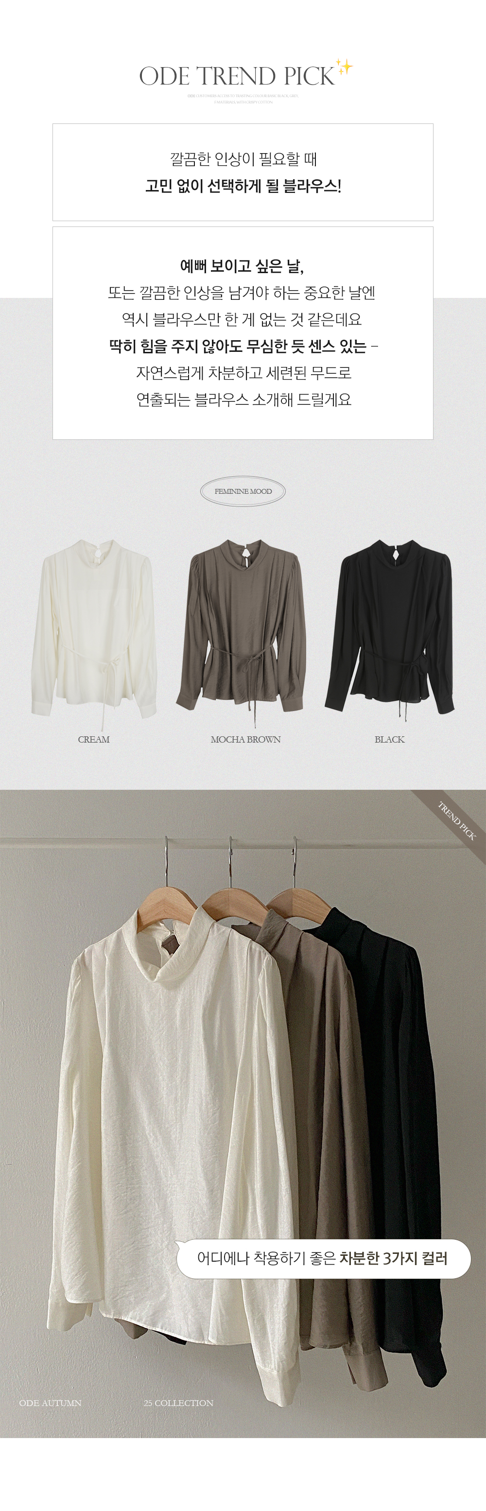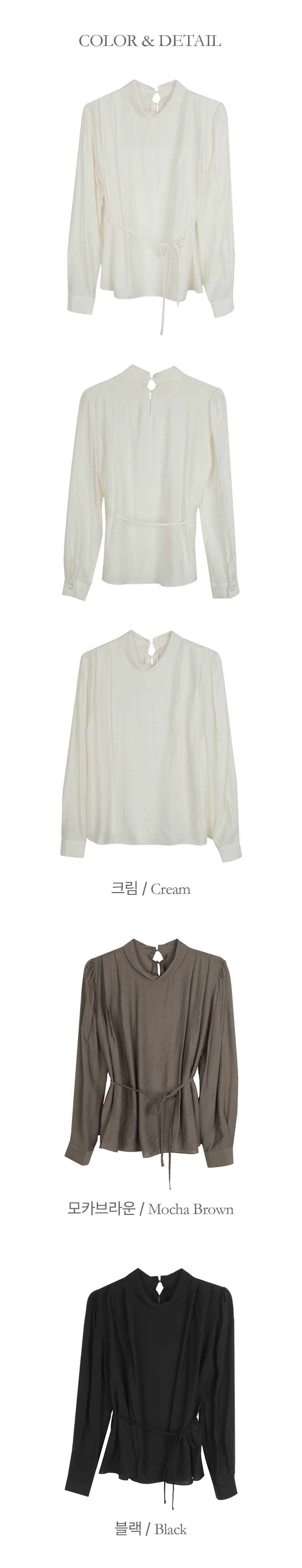 ハーフネック ショルダー シャーリング ブラウス(+ベルト)