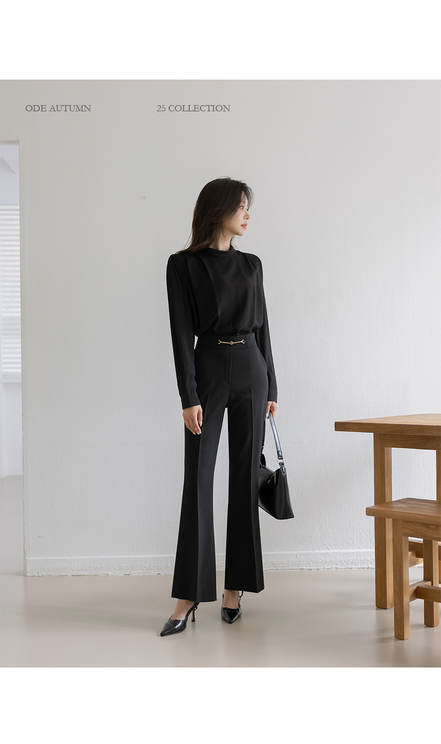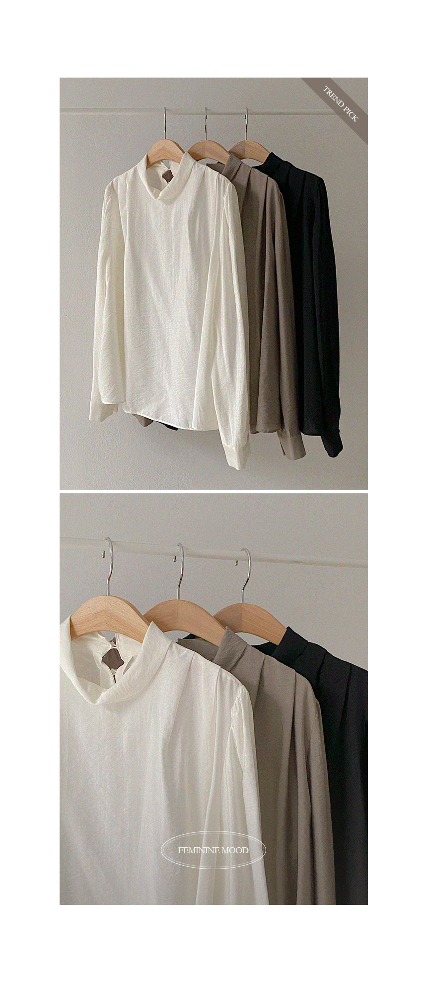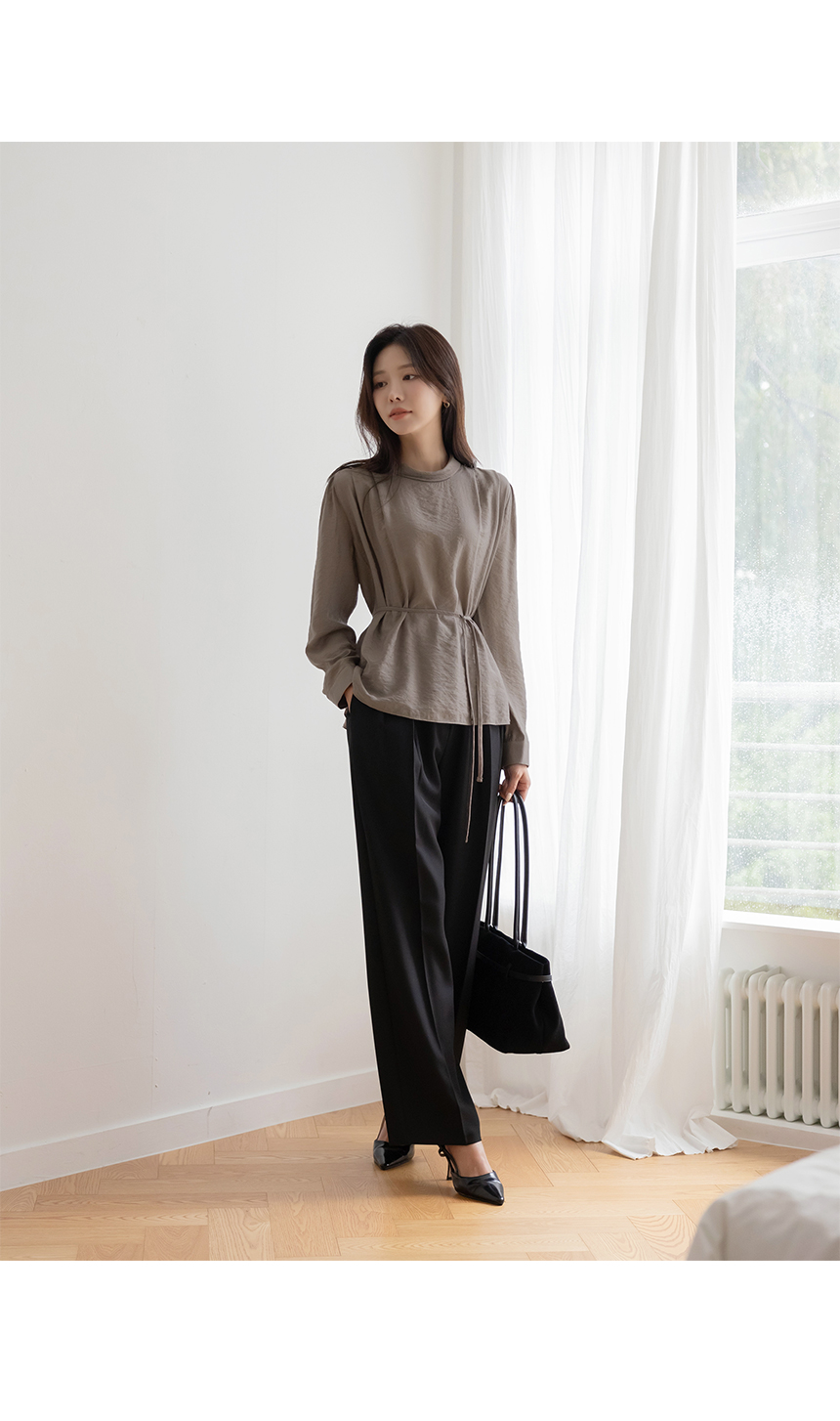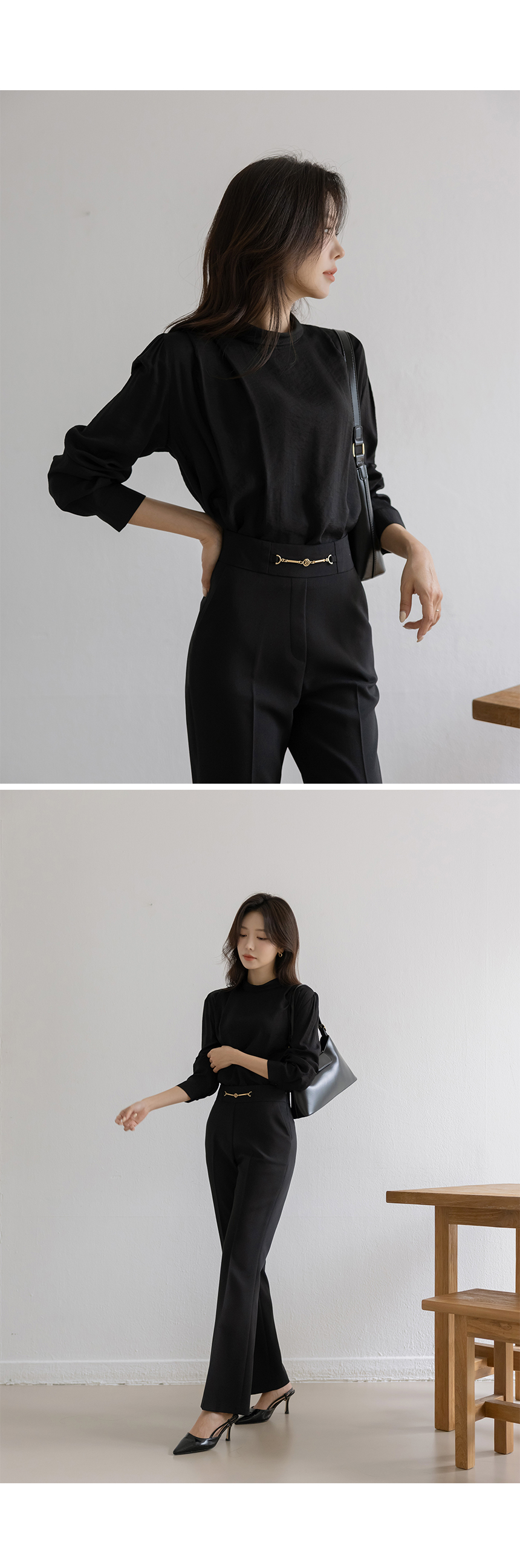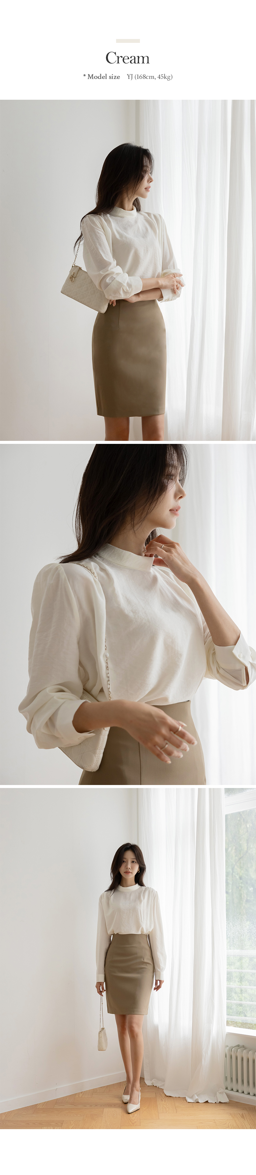 ハーフネック ショルダー シャーリング ブラウス(+ベルト)