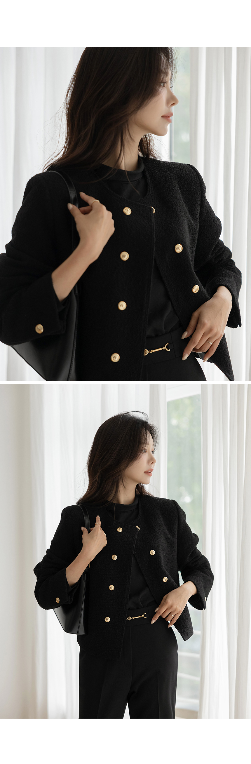ゴールド ダブル ボタン ツイード ウール ジャケット