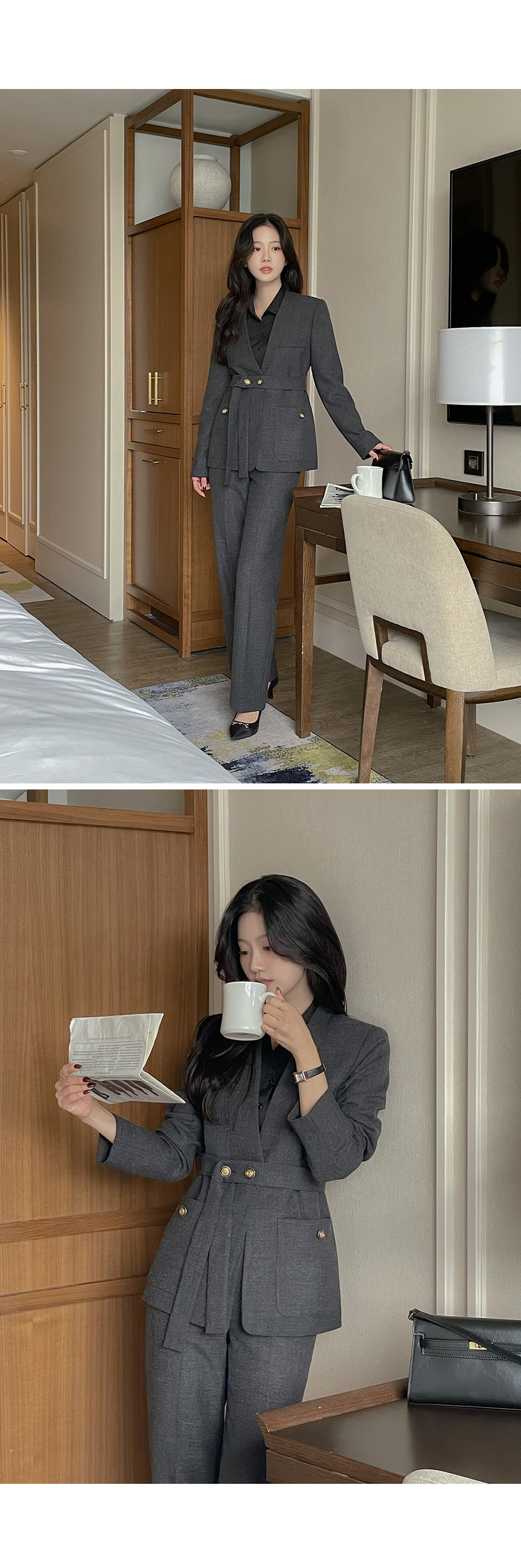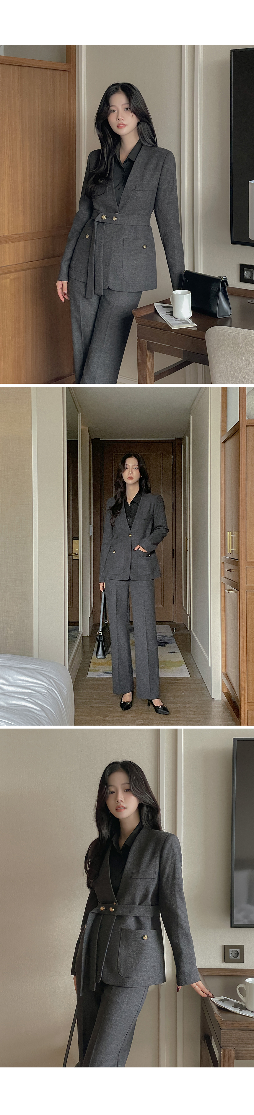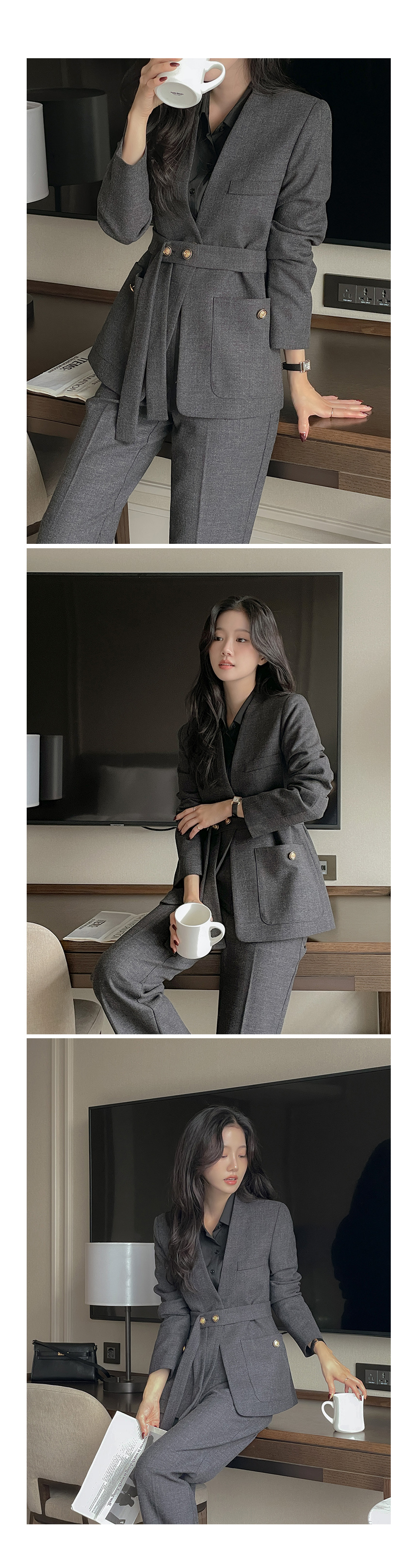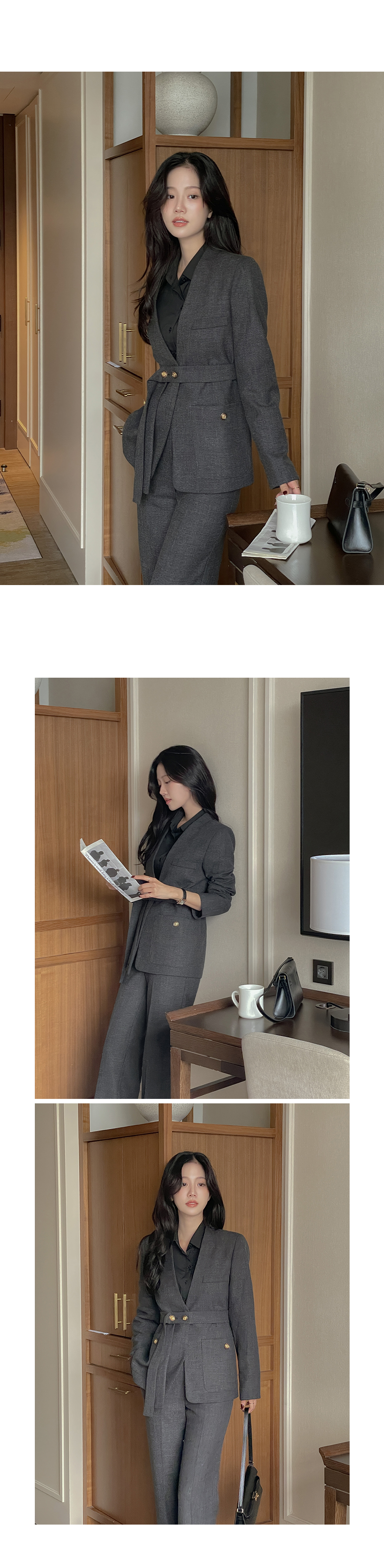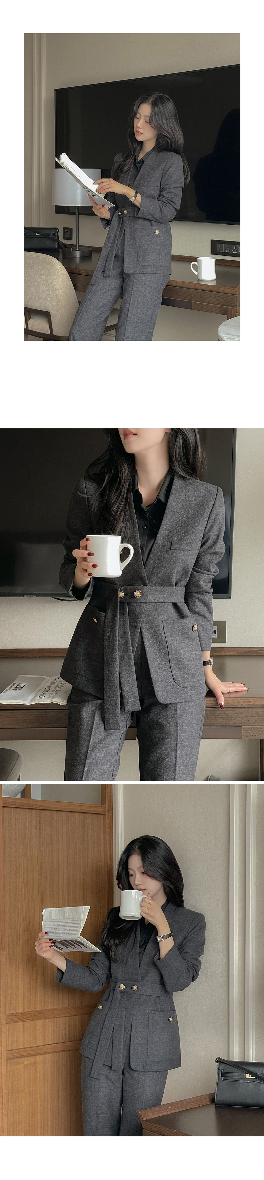 ボカシ ノーカラー Set-up ジャケット(+ベルト)