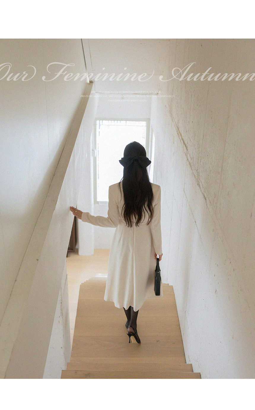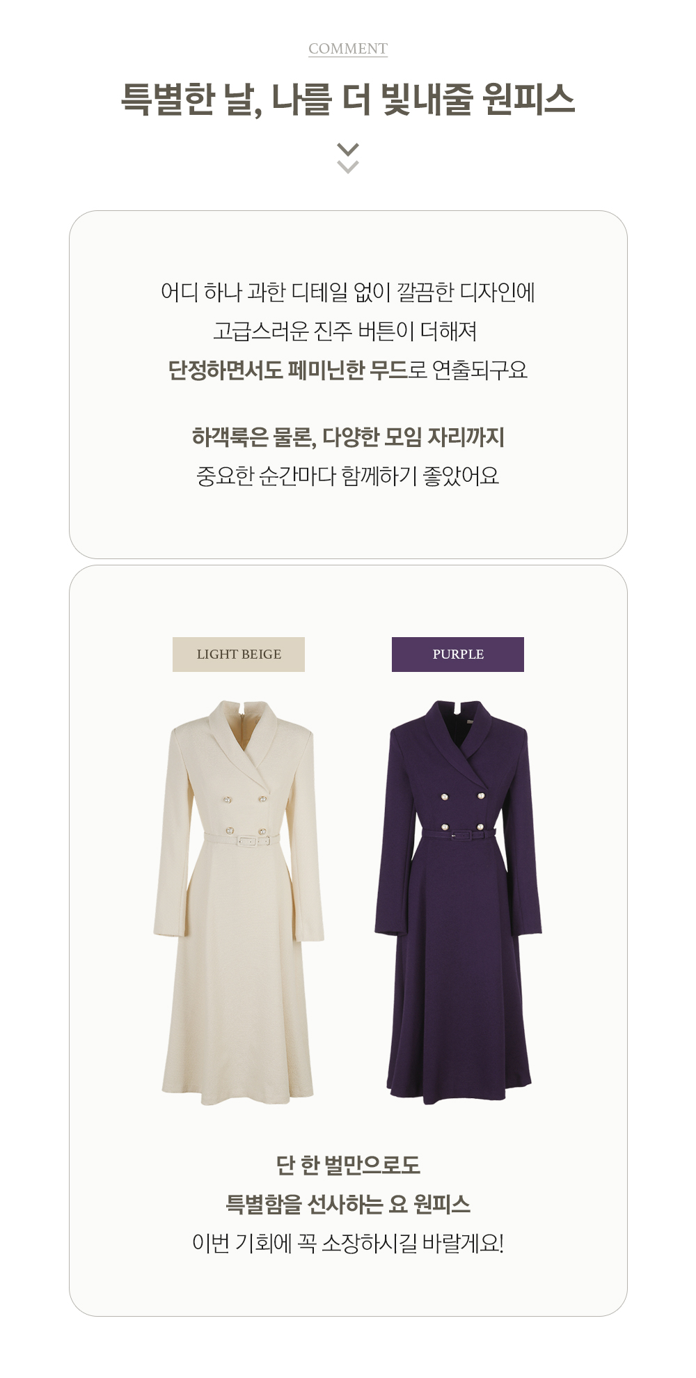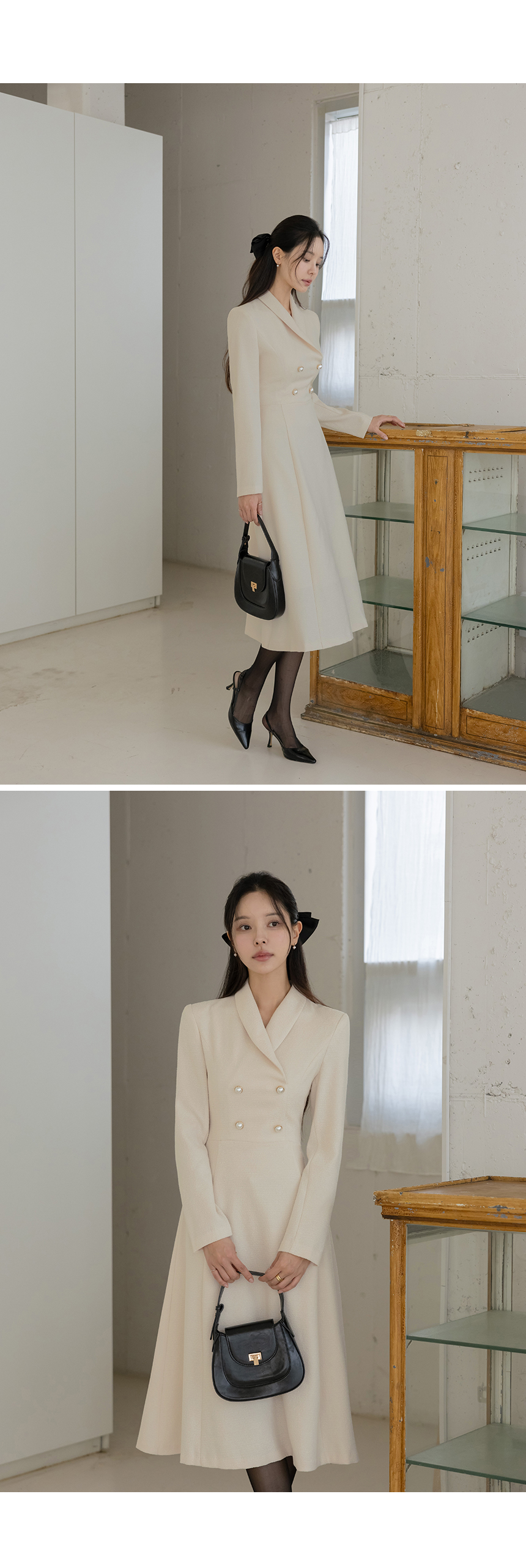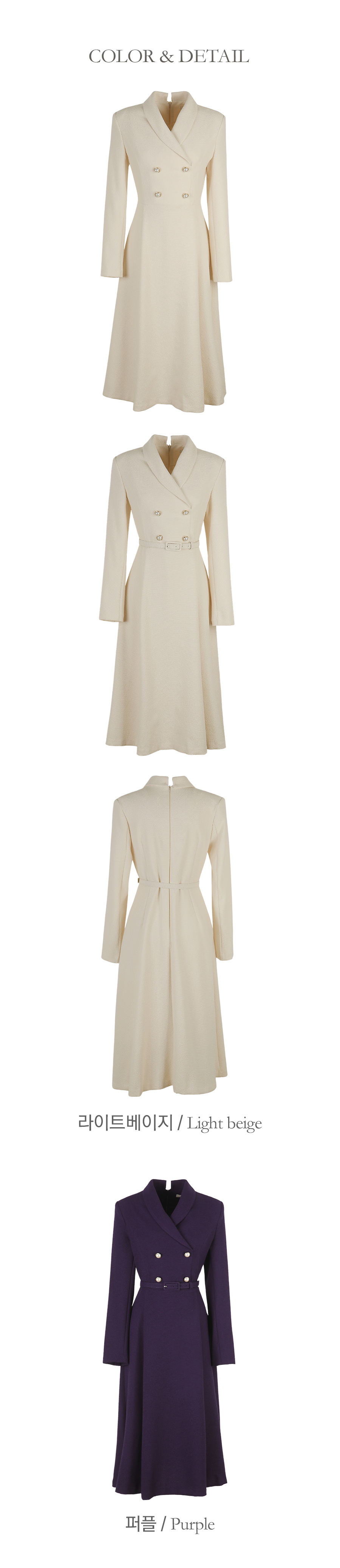 ショールカラー 真珠ボタン Aライン ツイード ワンピース(+ベルト)