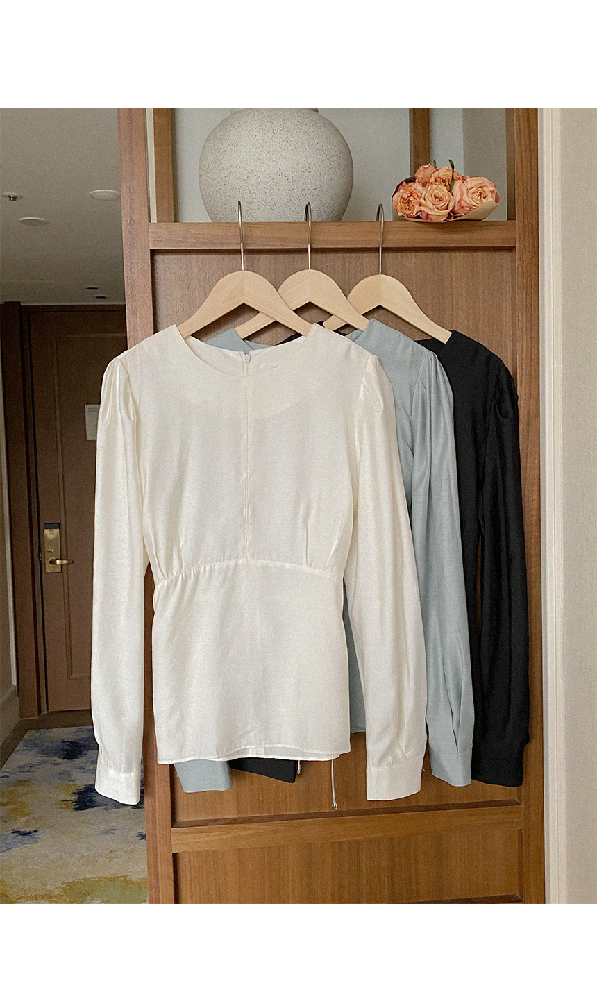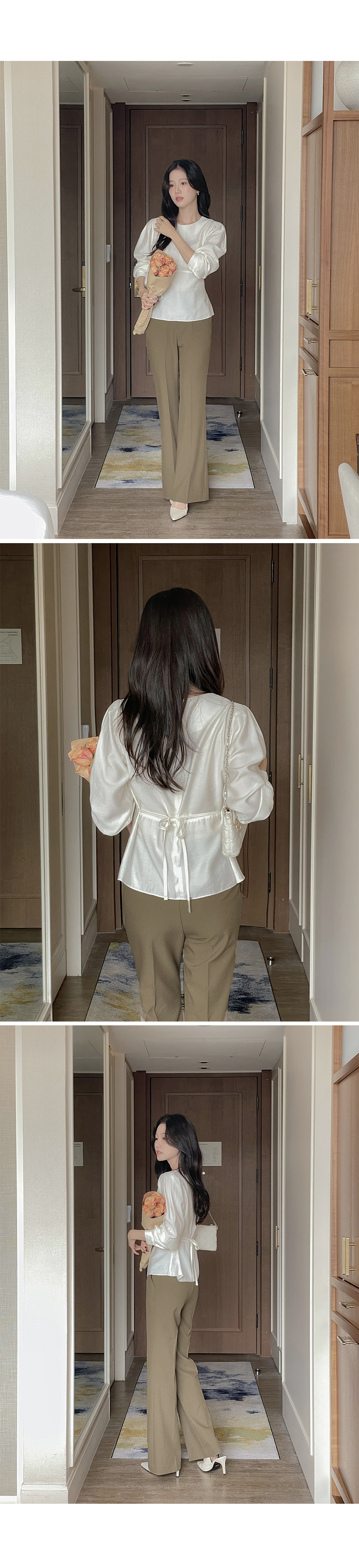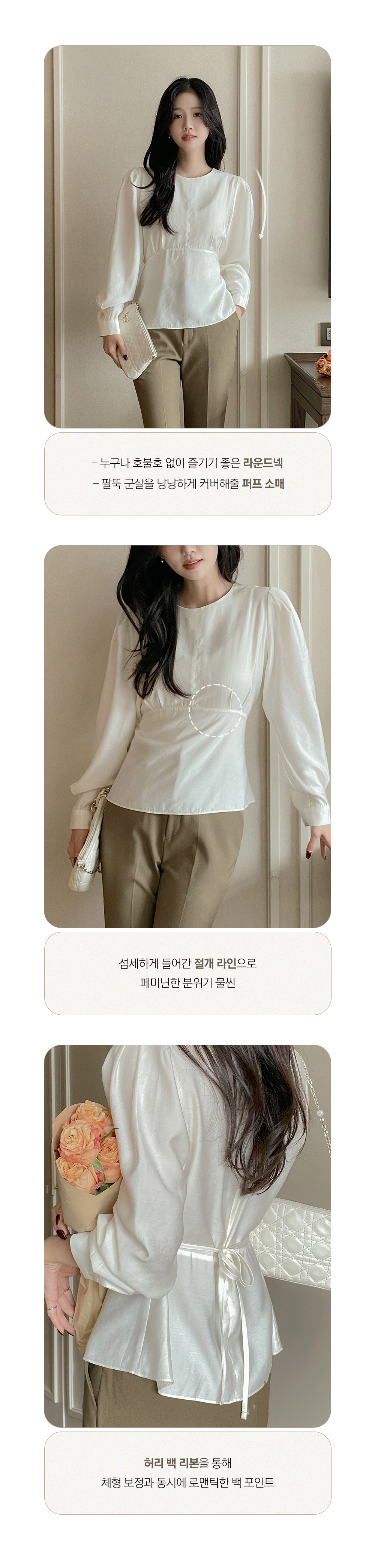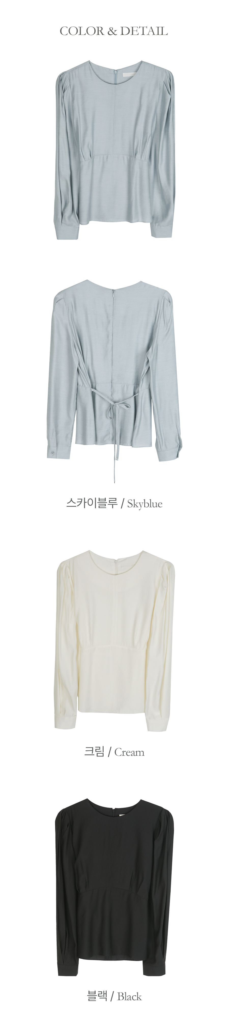 ペプラム バックリボン パフ ウール ブラウス