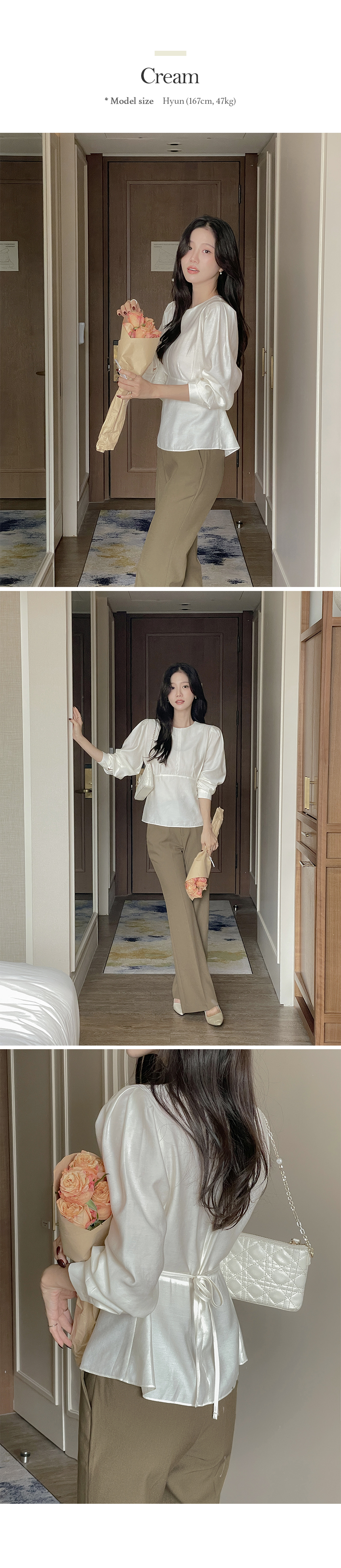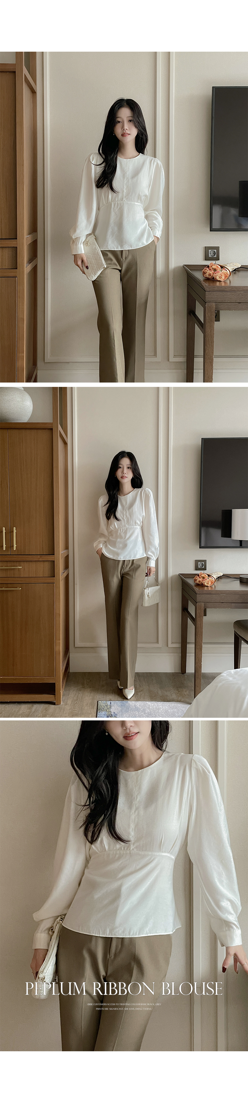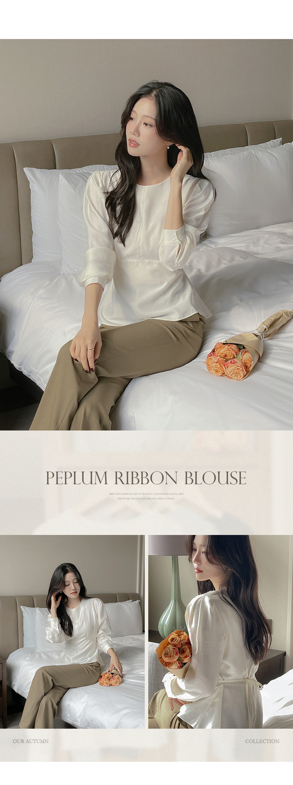 ペプラム バックリボン パフ ウール ブラウス