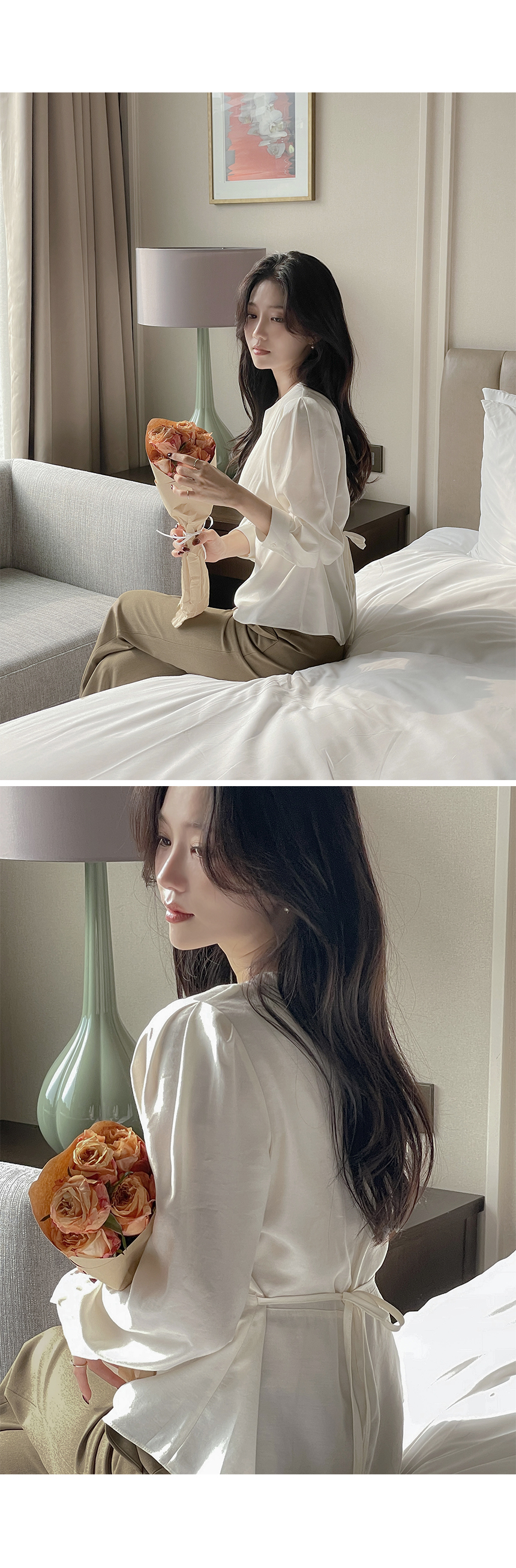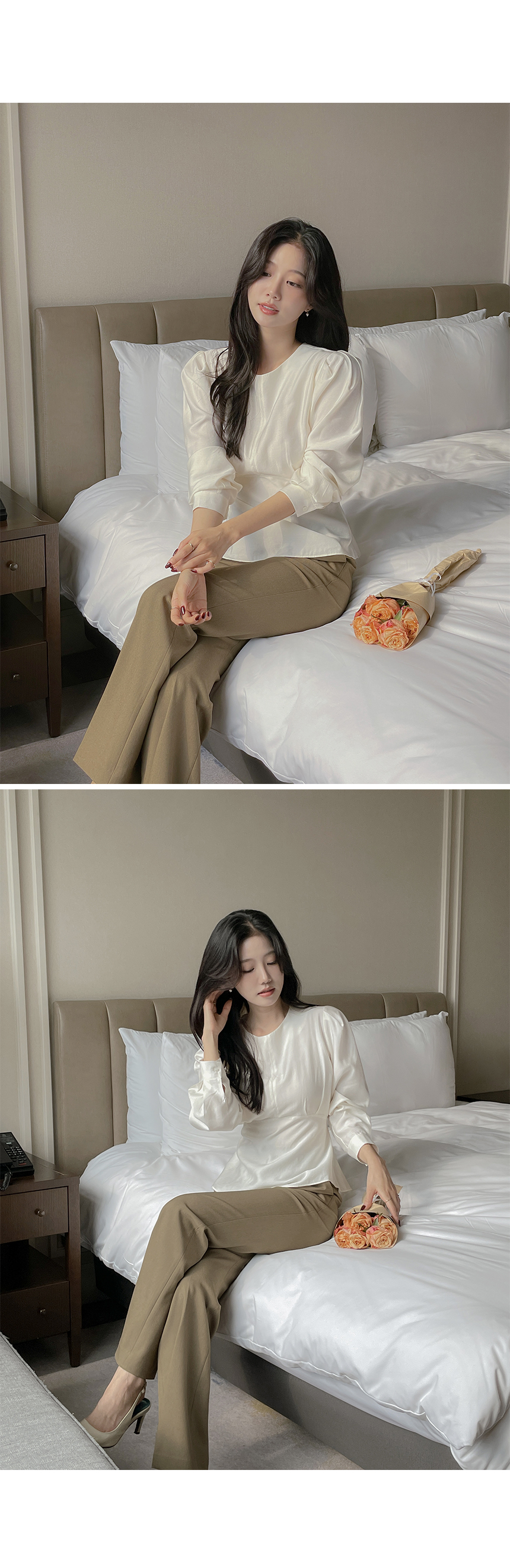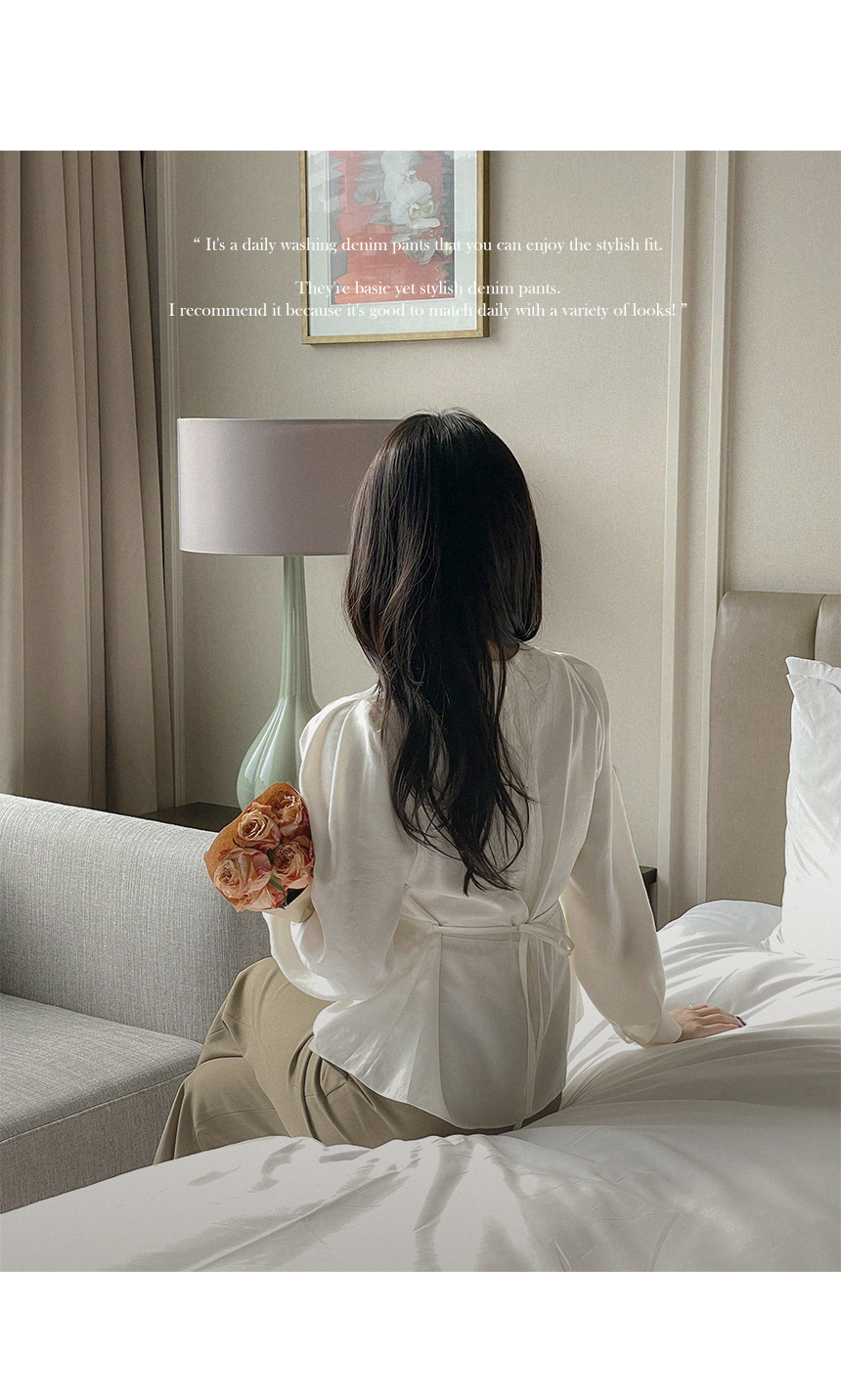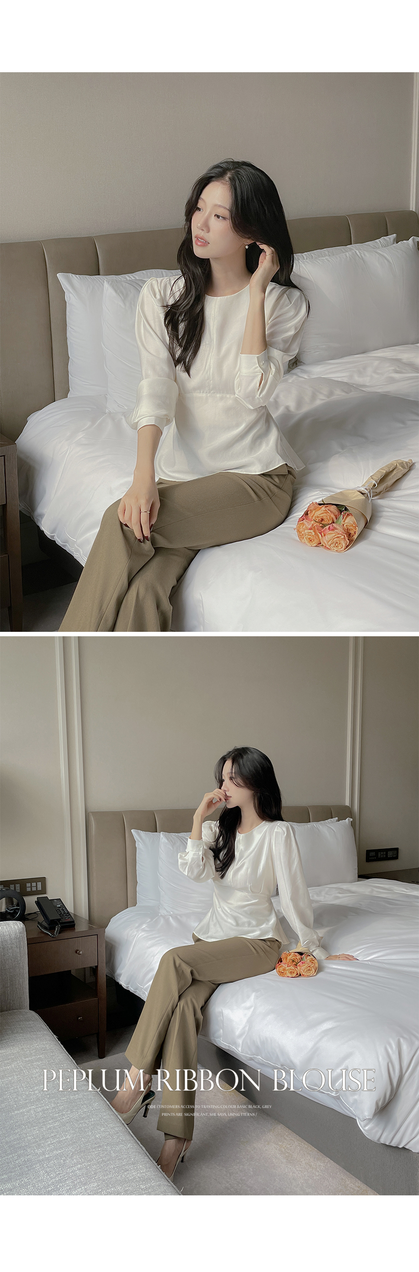 ペプラム バックリボン パフ ウール ブラウス