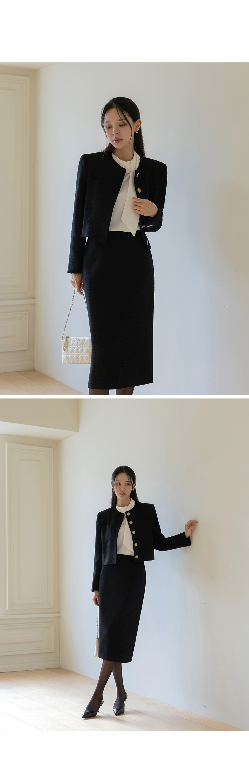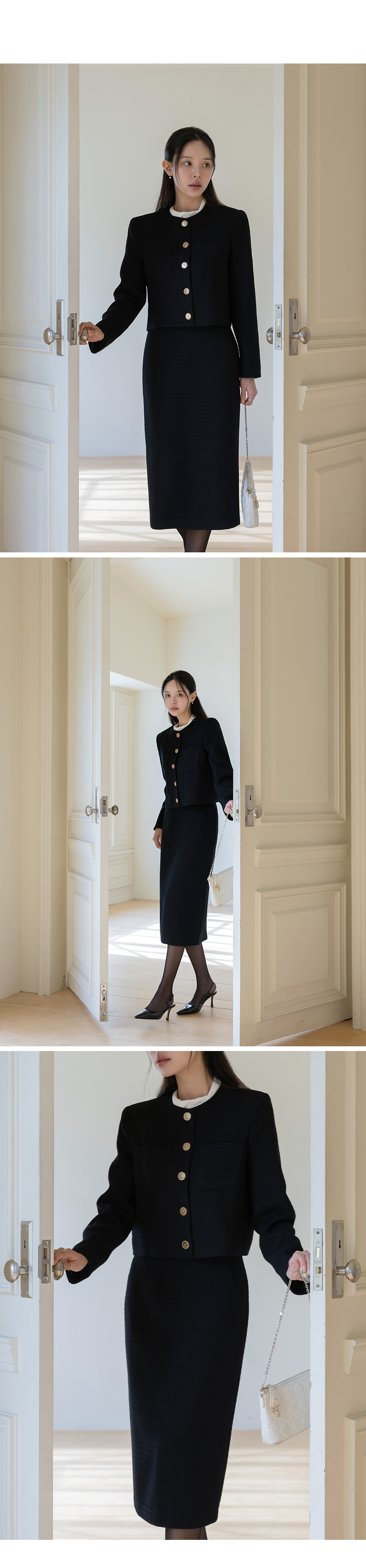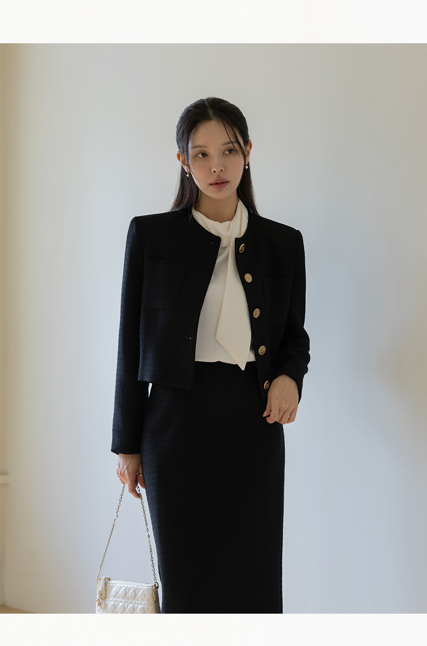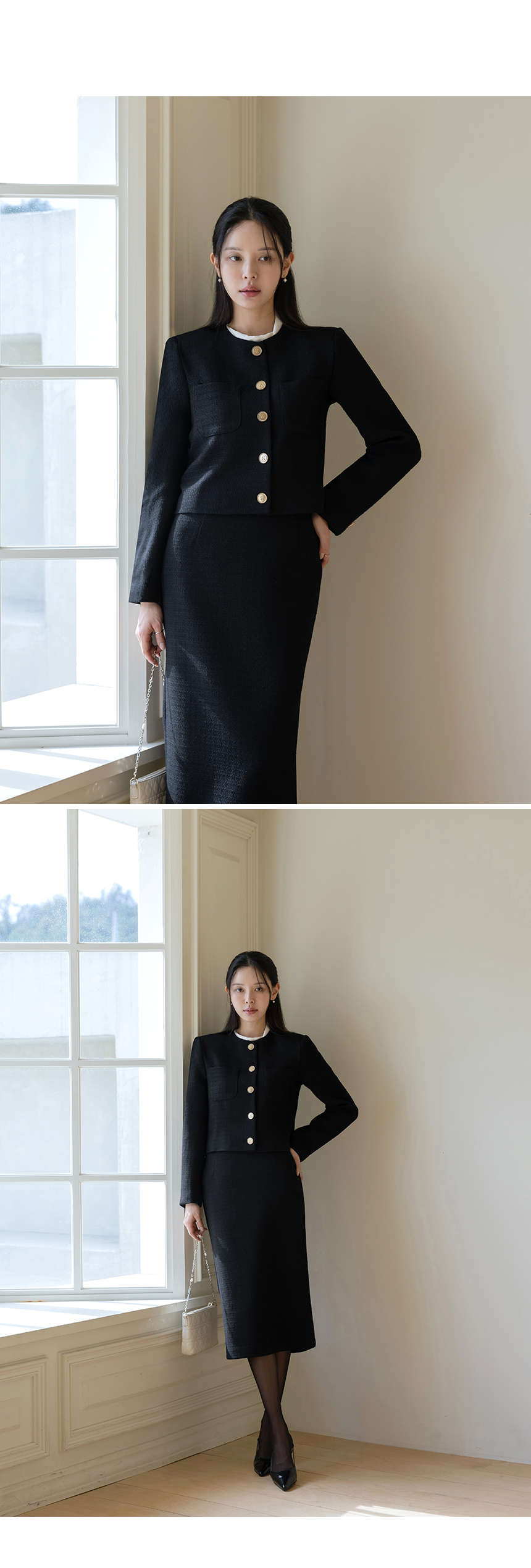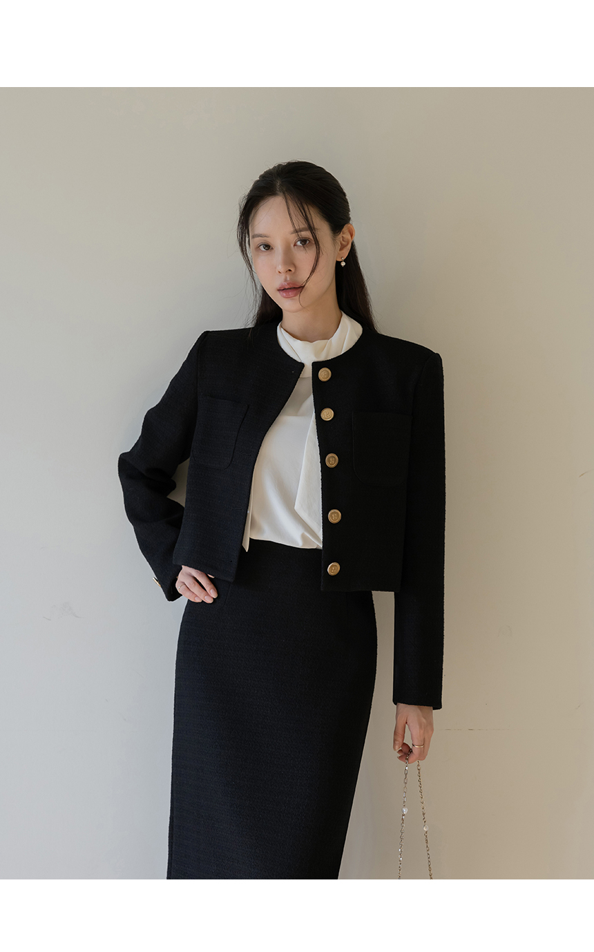 ライチー ラウンドネック パール ツイード Set-up ジャケット