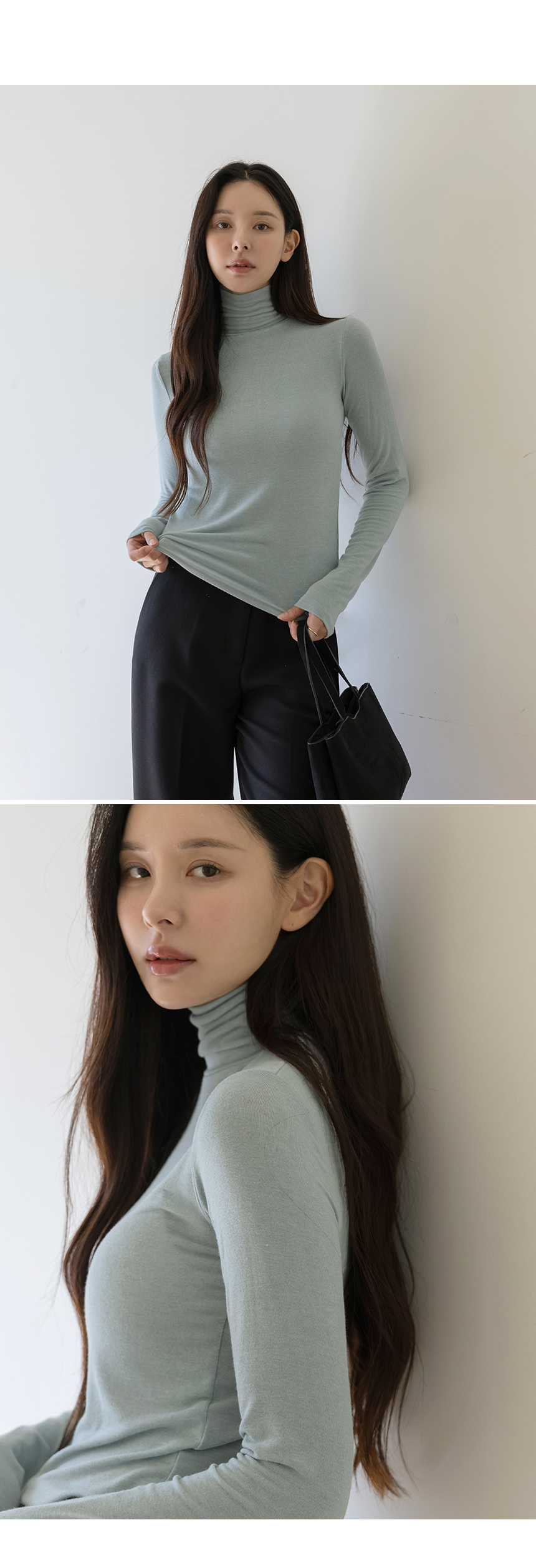 デーリー 細かく美しい ハイネック ウール ティーシャツ