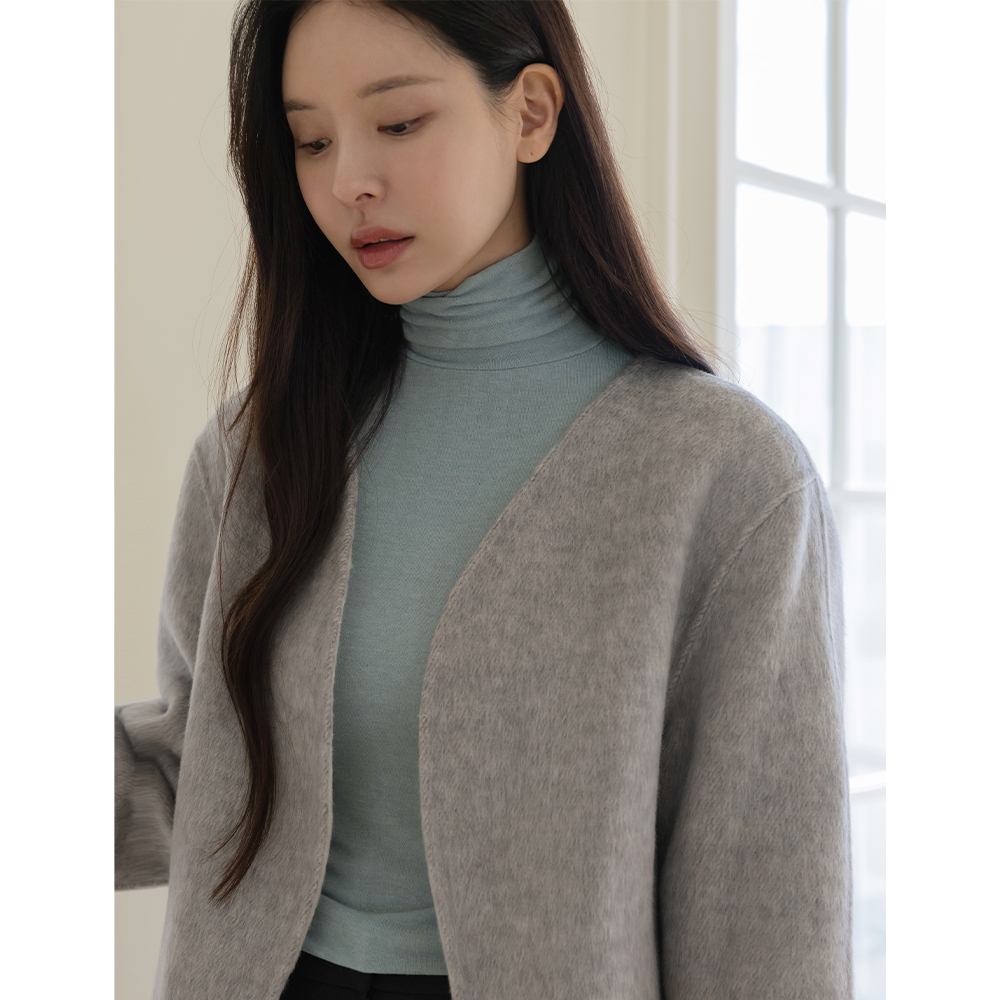 デーリー 細かく美しい ハイネック ウール ティーシャツ