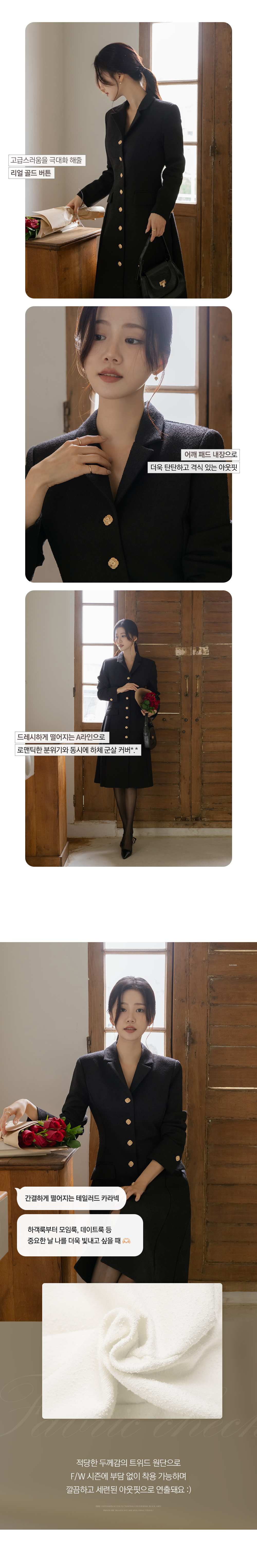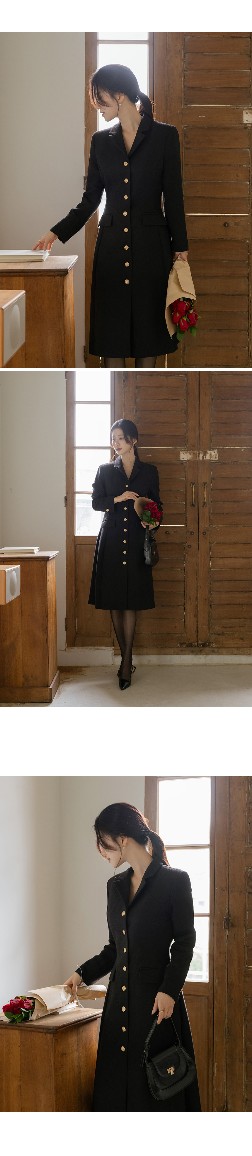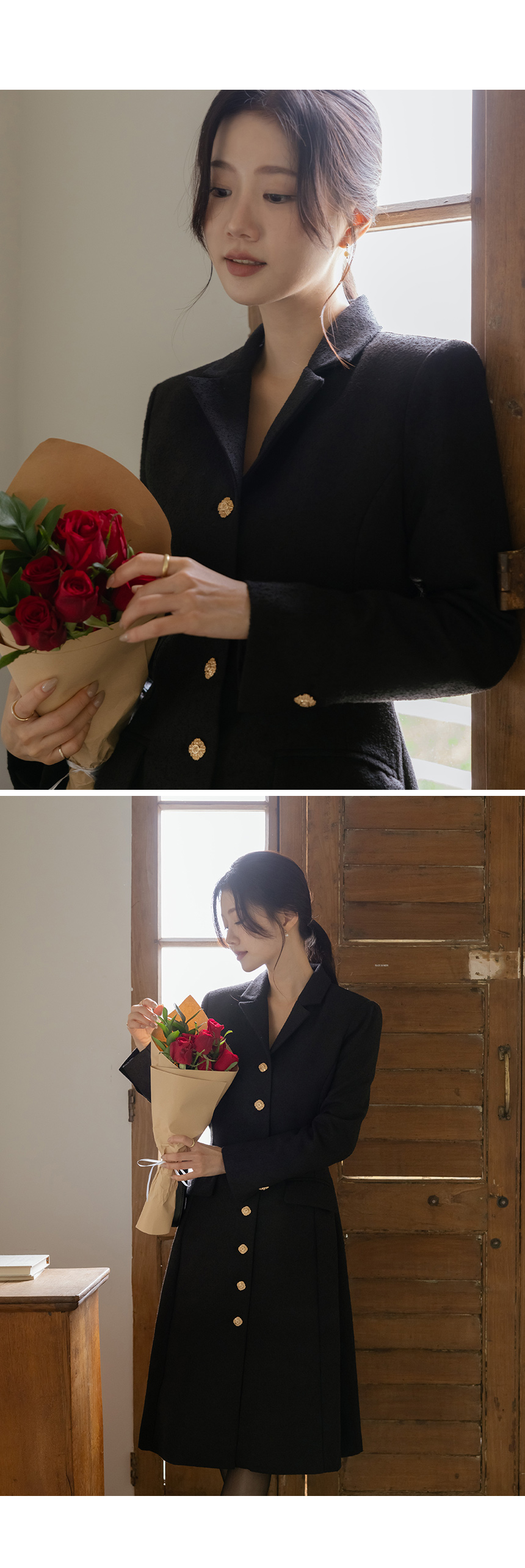 カラーネック ゴールドボタン Aライン ツイード ワンピース