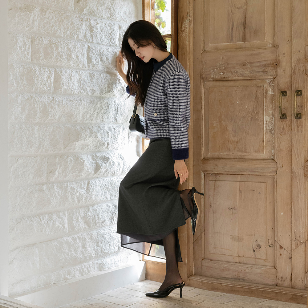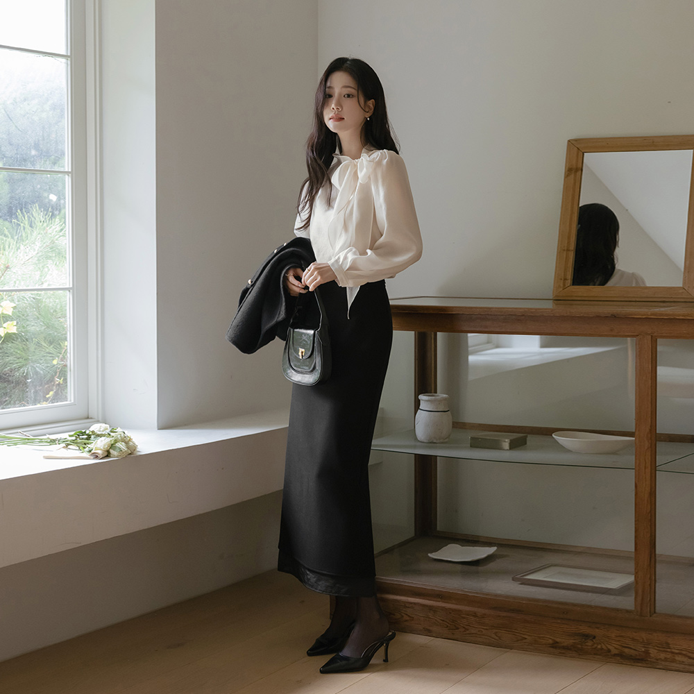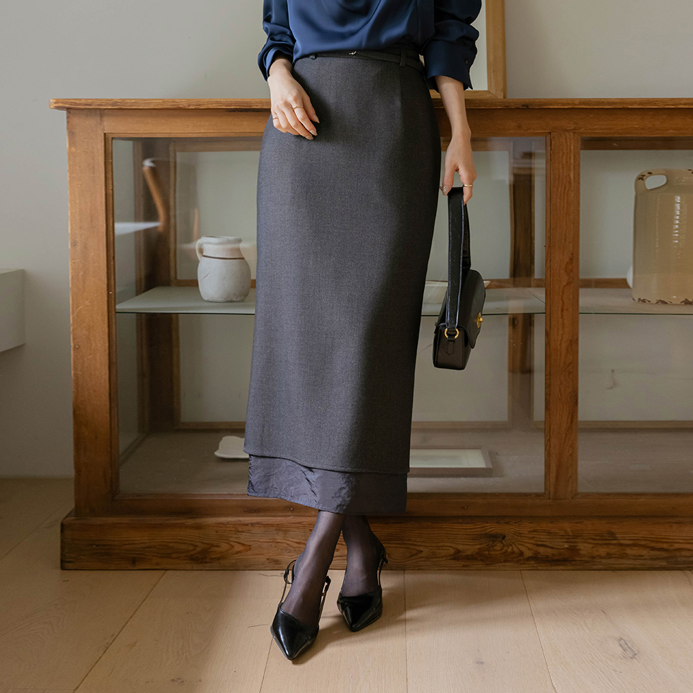 シースルー 配色 Hライン ロング スカート(+ベルト)