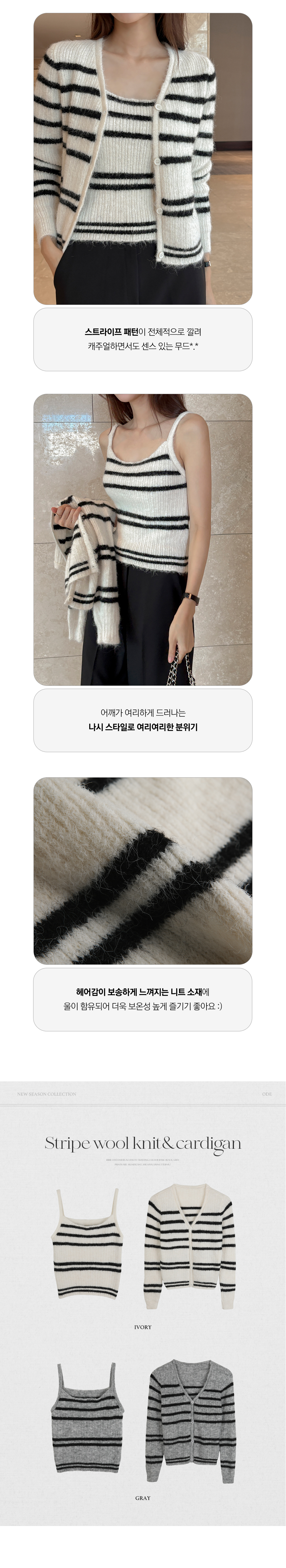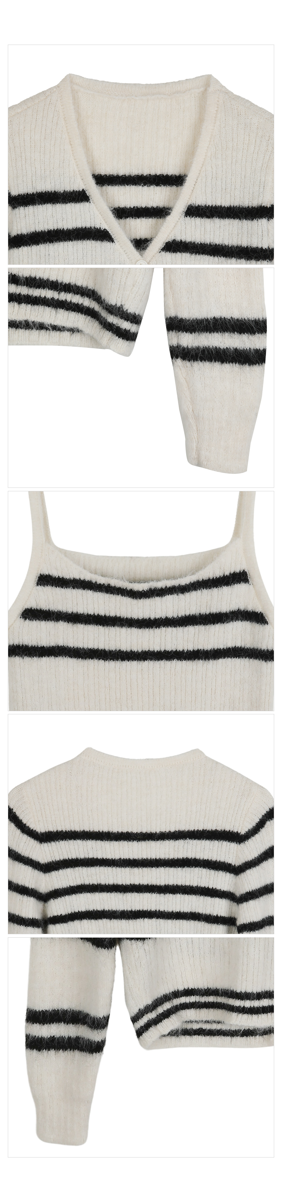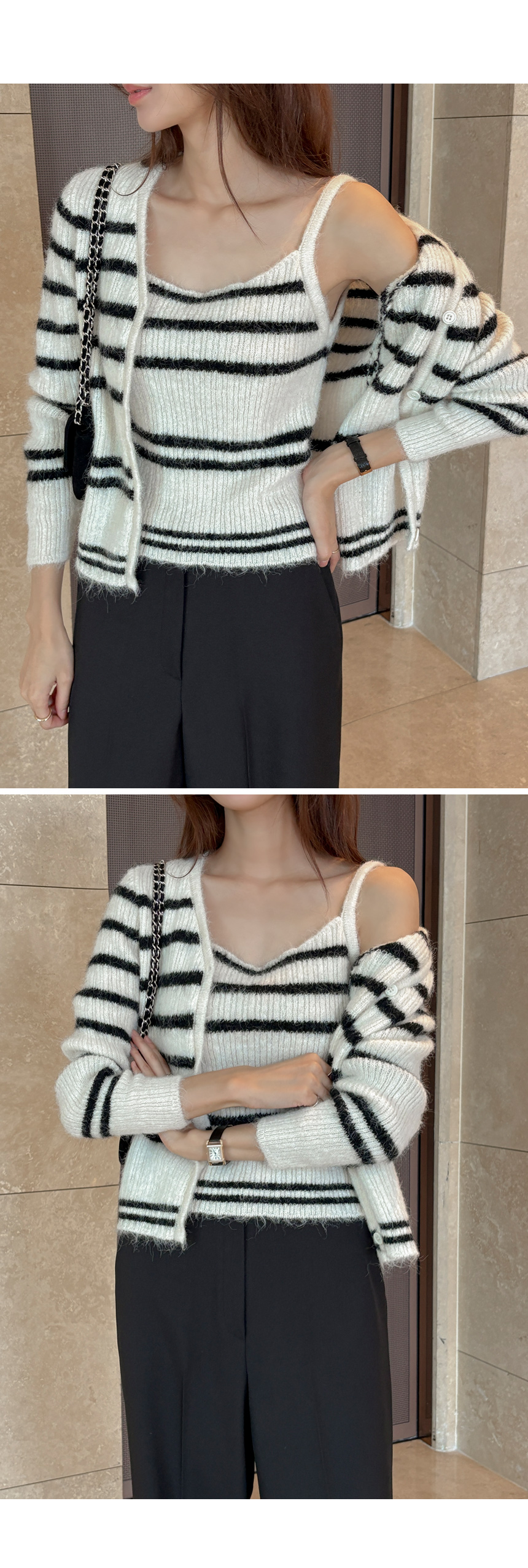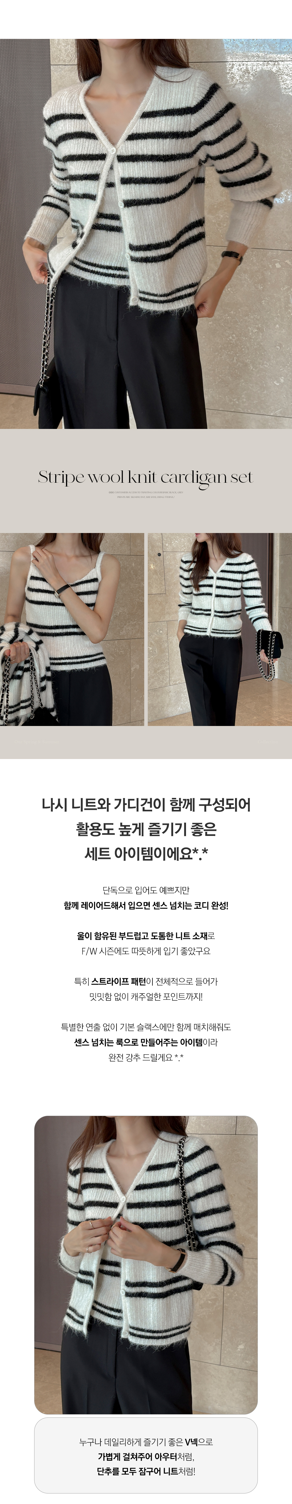 ストライプ ウール 袖なし ニット&カーディガン SET