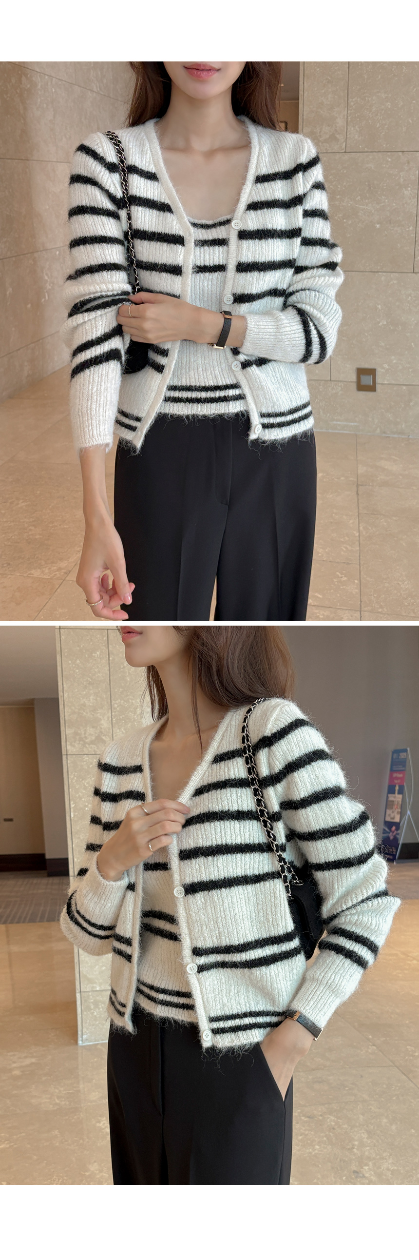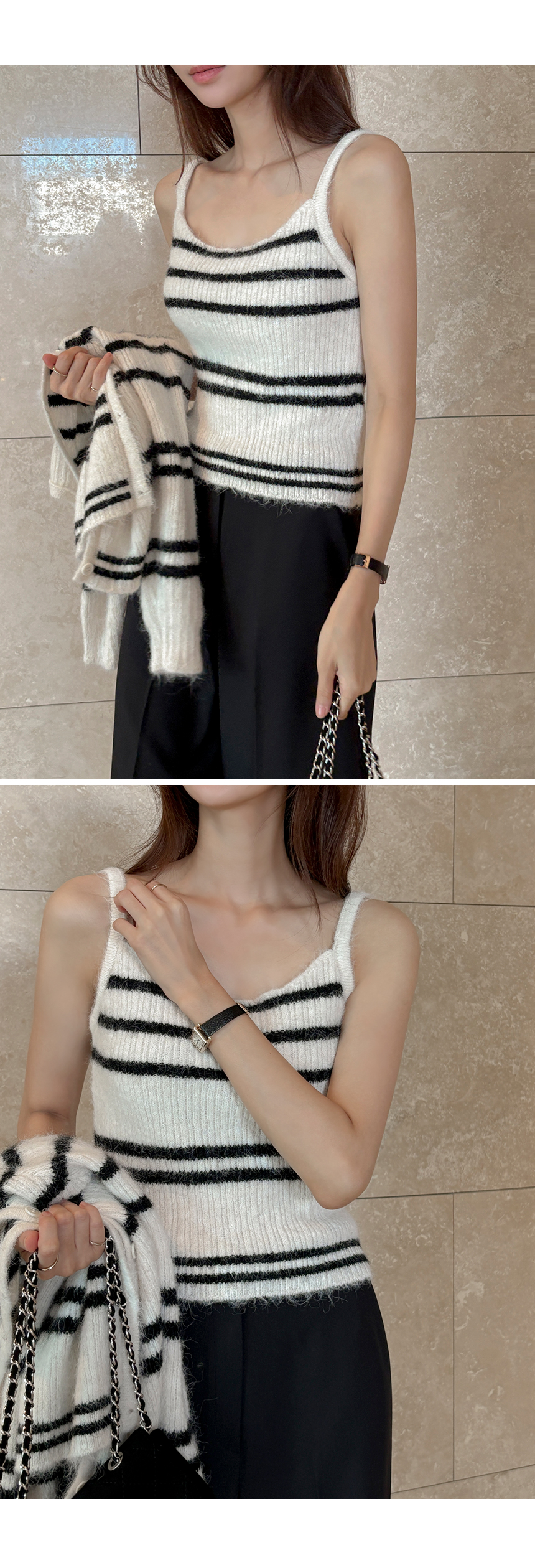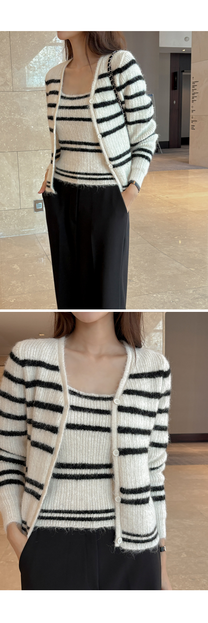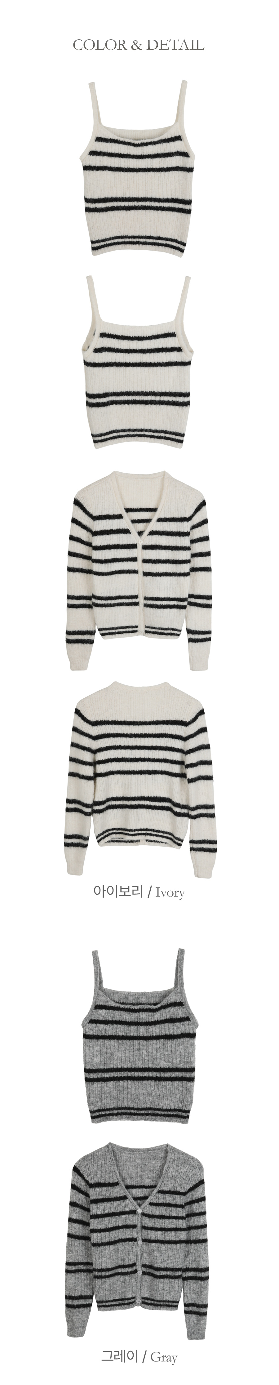 ストライプ ウール 袖なし ニット&カーディガン SET
